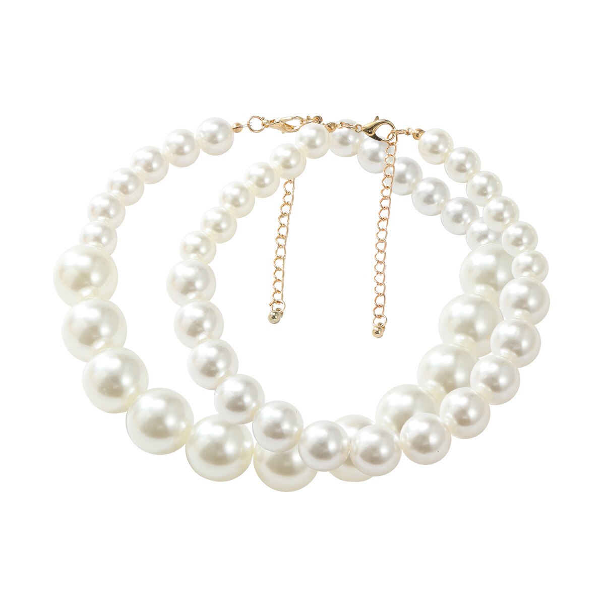 Dermearne New 2 Pcs/set Imitation Pearls Choker Necklace Earrings for Women Exaggerate Big Pearl Necklaces Jewelry Sets
