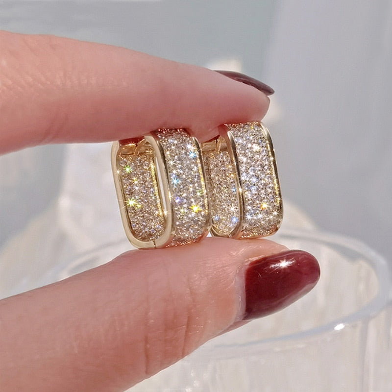 Dermearne Huitan Fashion Contracted Design U Hoop Metal Earrings for Women Full Paved Shiny CZ Daily Wear Exquisite Earrings Jewelry