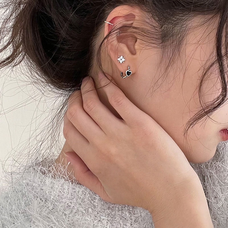 Dermearne New Silver Color Small Heart Hoop Earrings for Women Black Heart Cartilage Ear Piercing Jewelry Pendientes Hombre Mujer