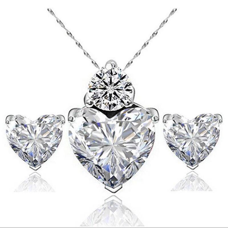 Dermearne Sincere Heart Sharp Setting Cubic Necklace Earrings Set Fashion Color Optional Party Jewelry Sets for Woman