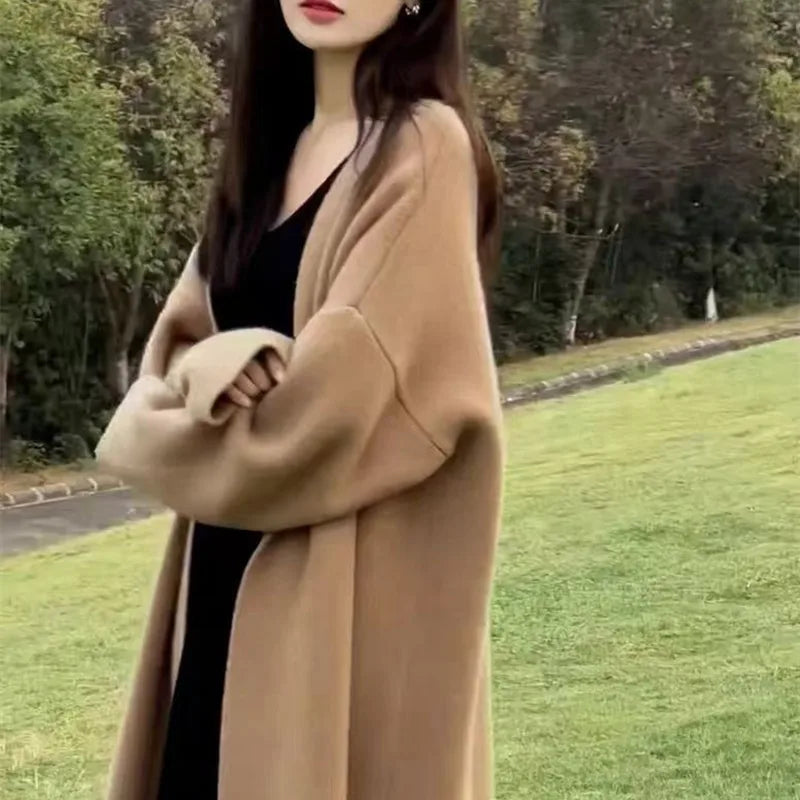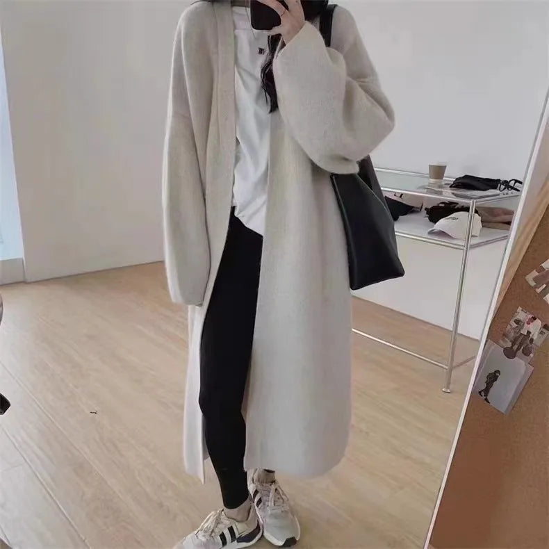 Basics Solid Long Cardigan Women Knitted V-Neck Top Coat Fashion Jacket Long Sleeved Knitted Cardigan Sweater Autumn Winter