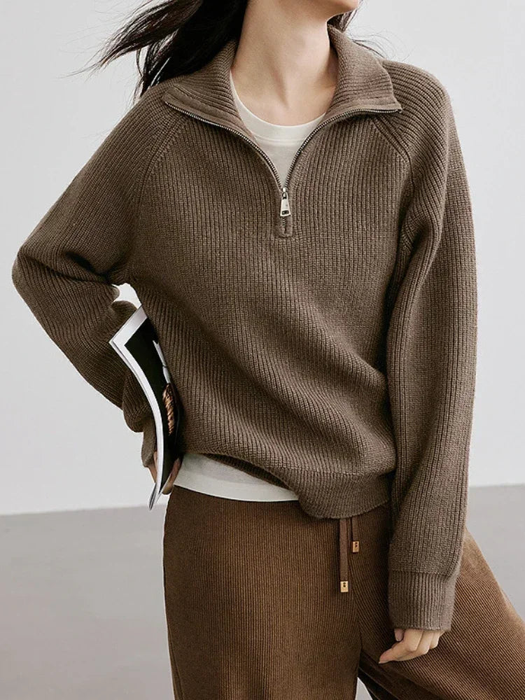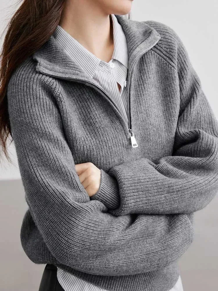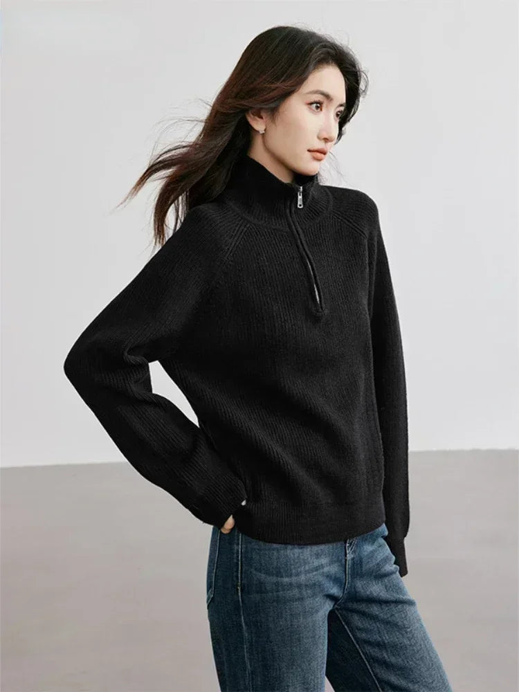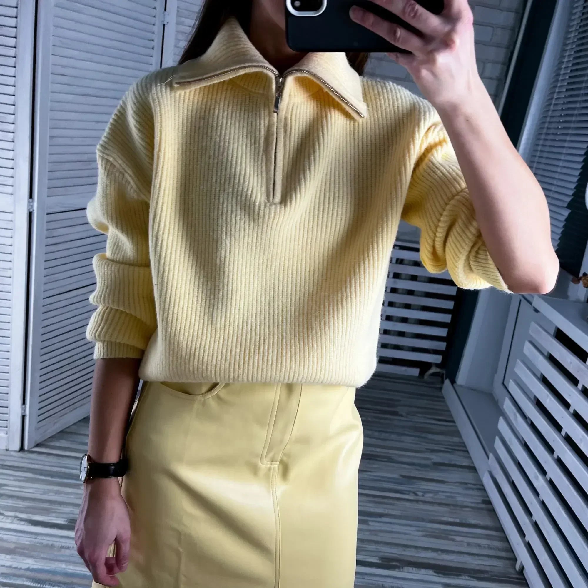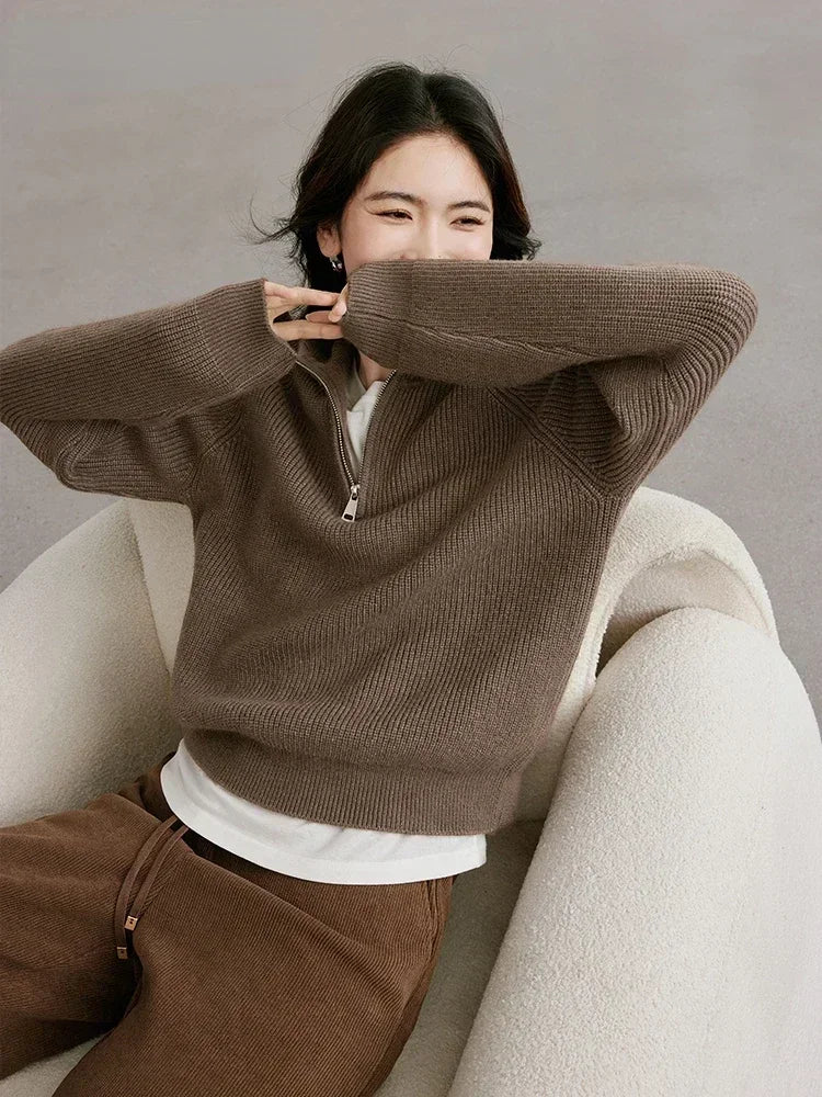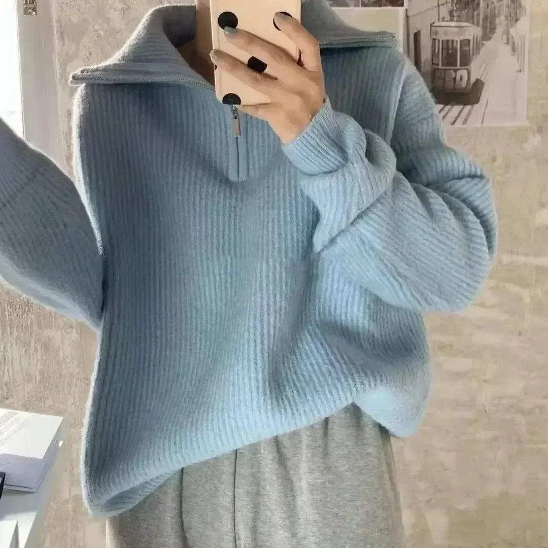 Casual Knitted Oversized Sweater Women Autumn 2024 New Loose Lapel Women's Pullovers Zippers Korean Fashion Jumper Knitwear