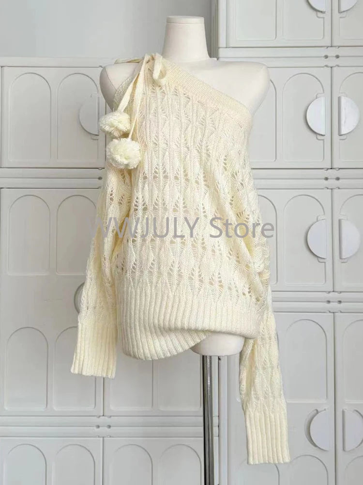 DERMEARNE Autumn Winter Woman Korean Fashion Cute Core Sweet 2000s Sweater Elegant Oversize Knitwears Designer Aesthetic Chic Coquette