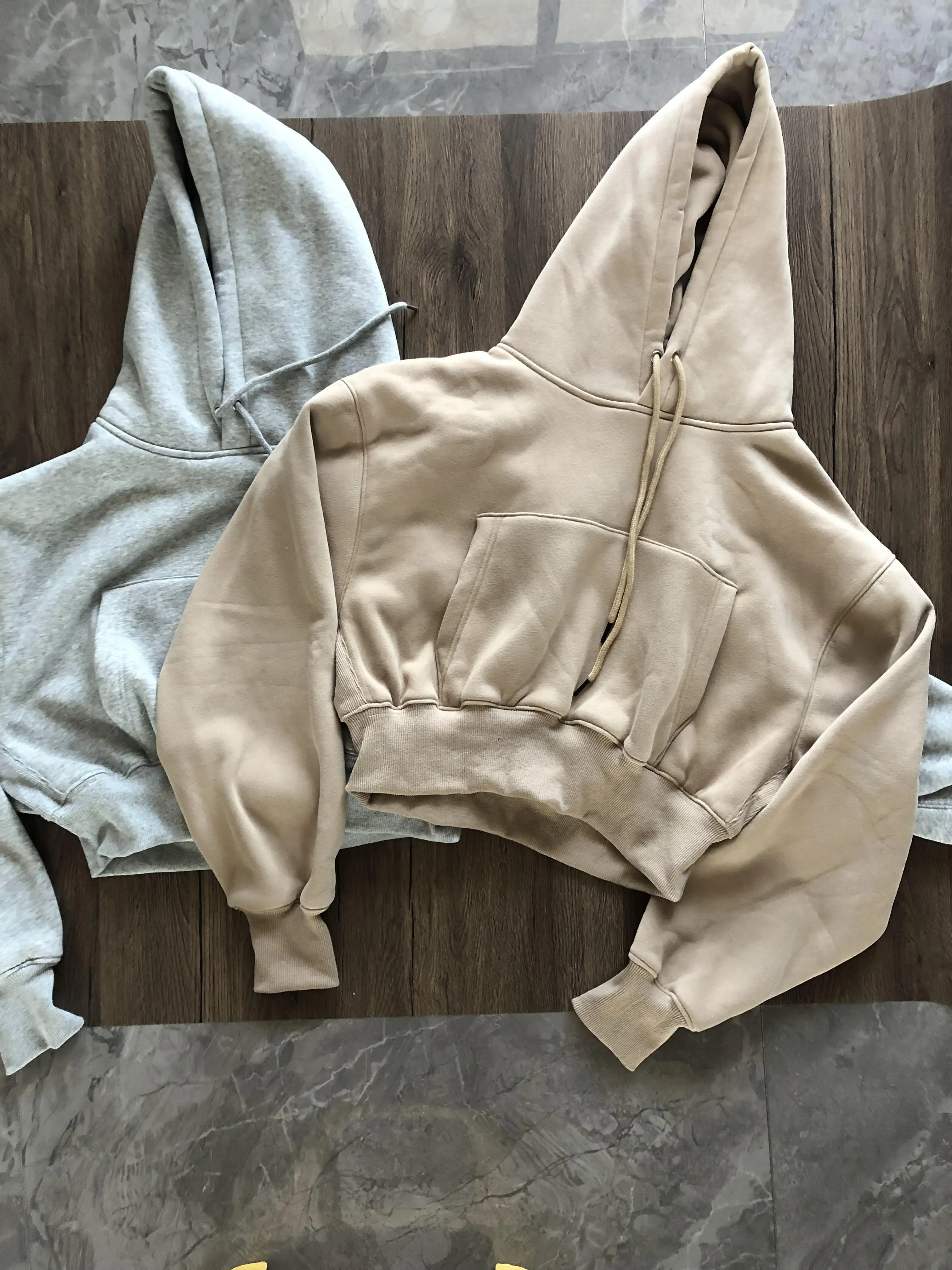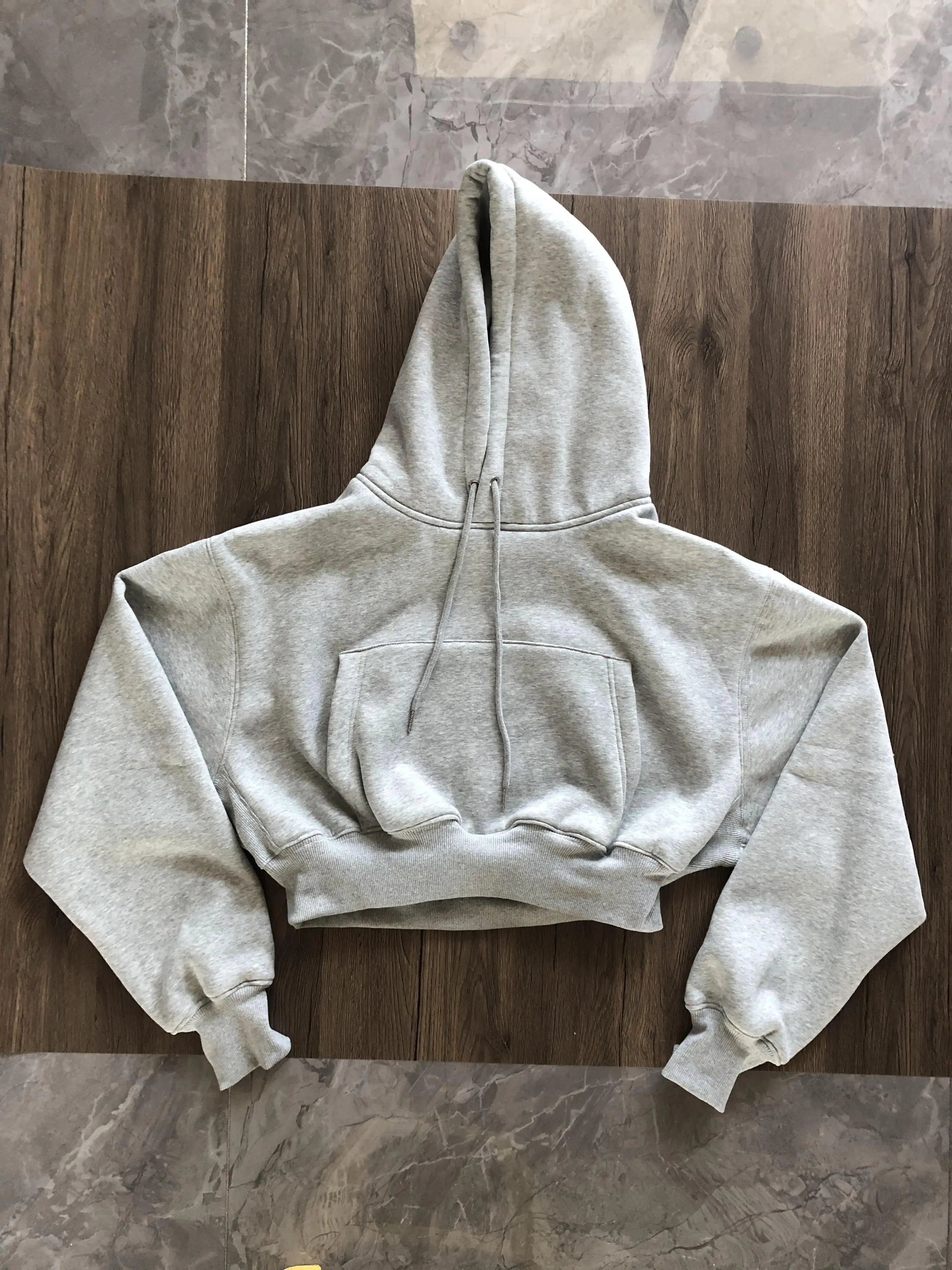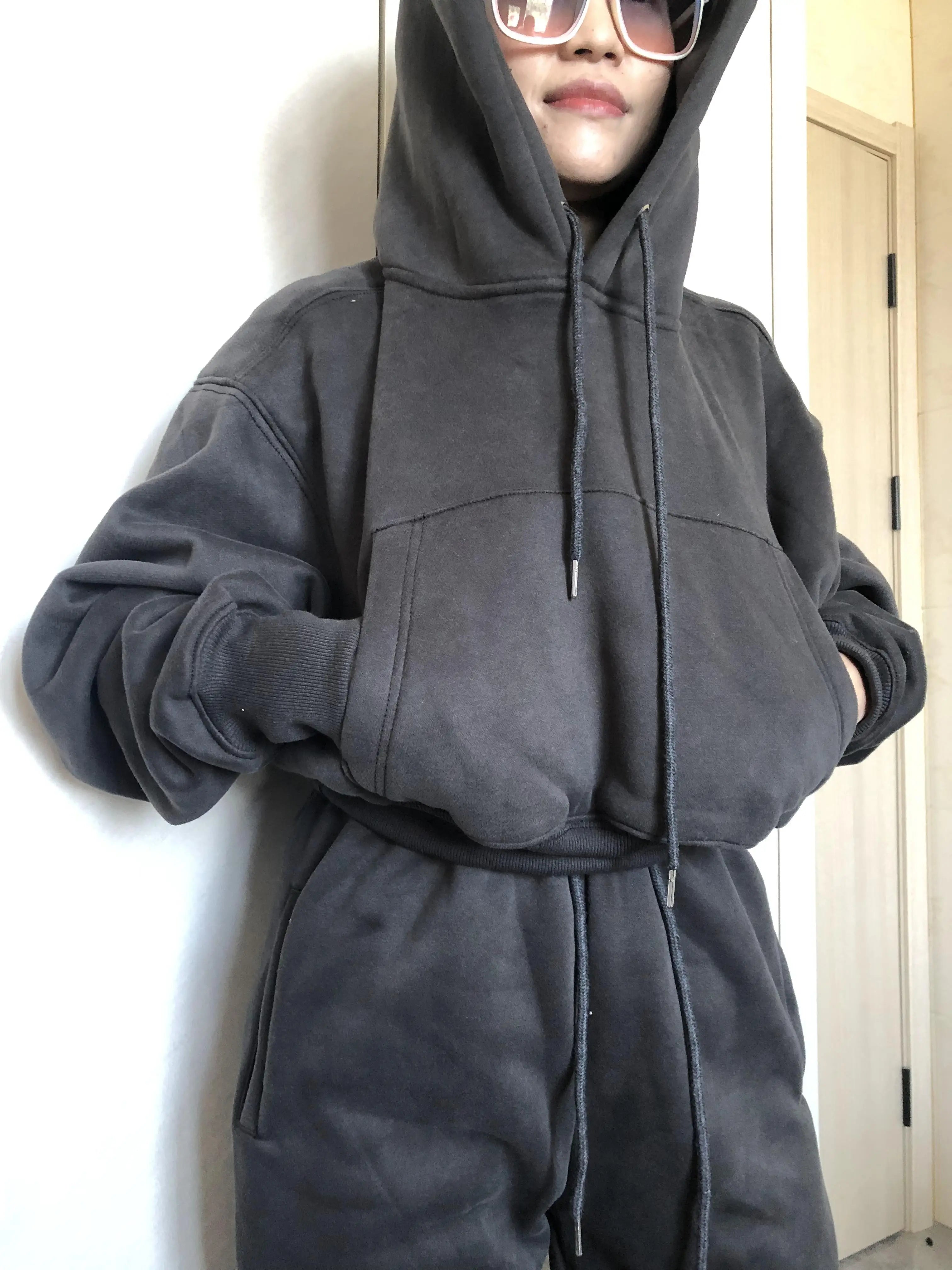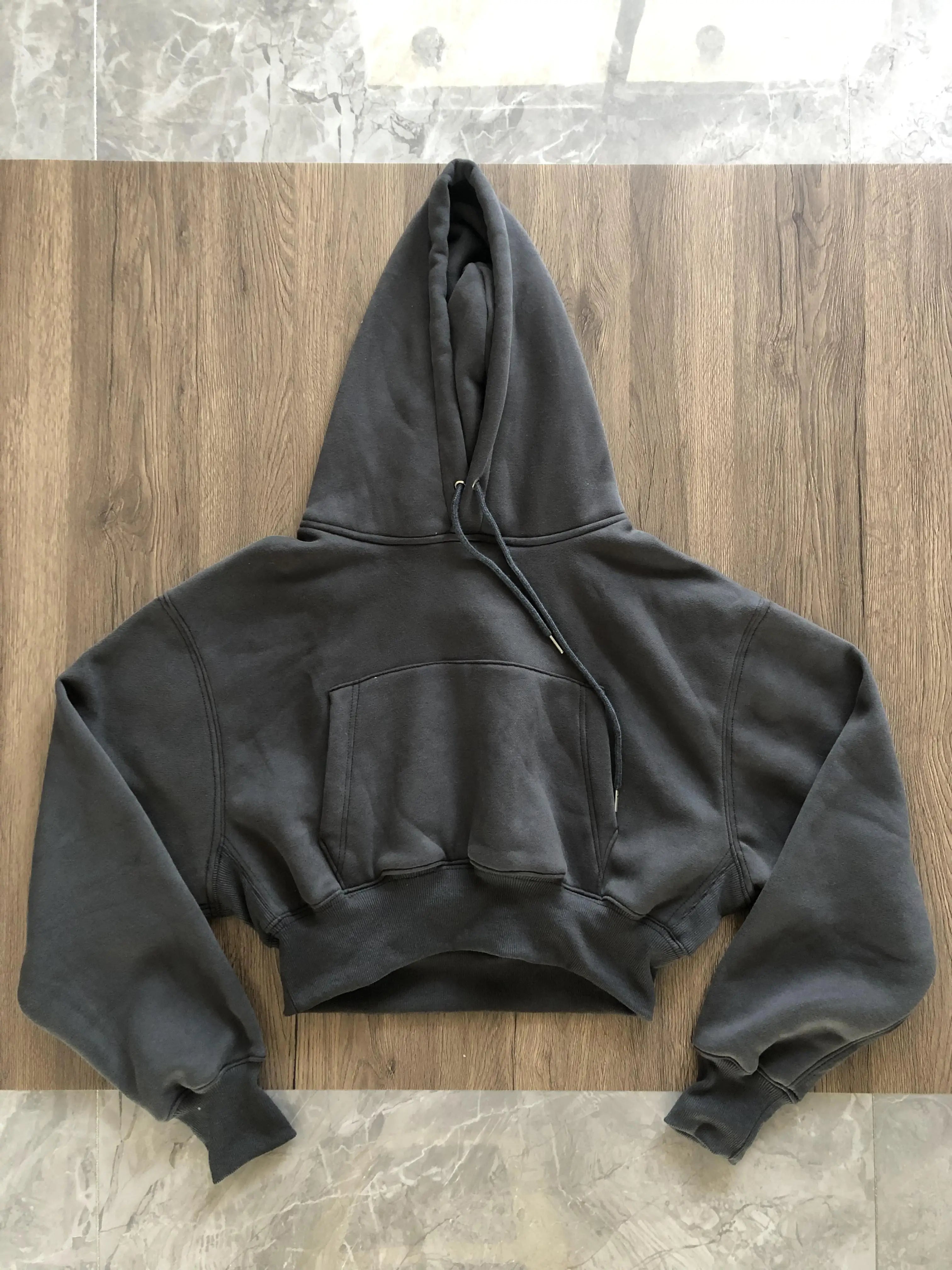 DERMEARNE Basic Wear Black Charcoal Hoodies for Women Autumn Winter Loose Fleece Hooded Sweatshirts Streetwear Cropped Pullovers