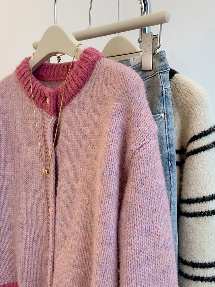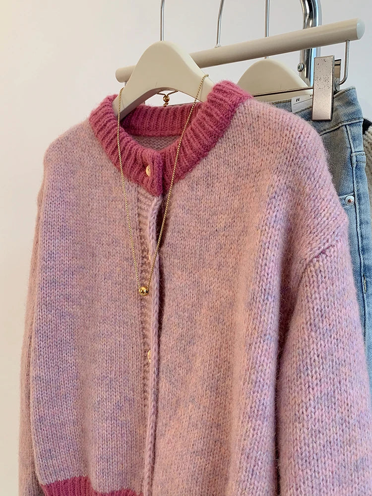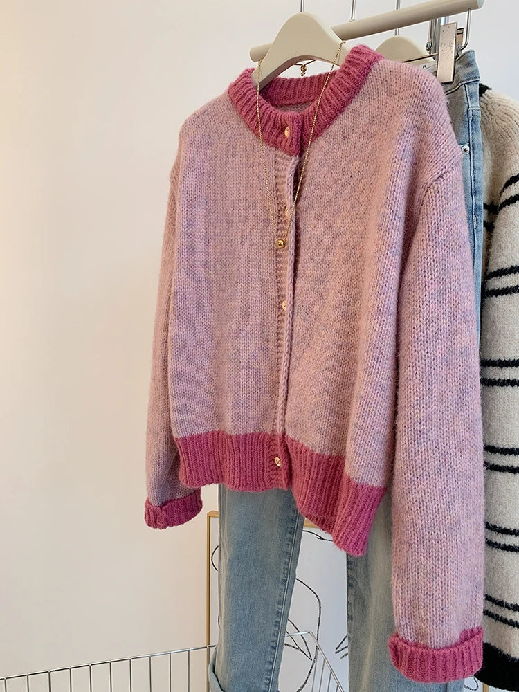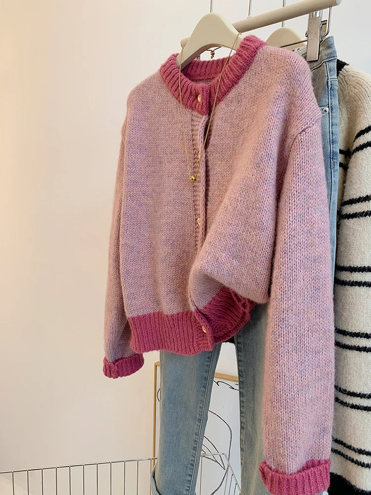 DERMEARNE Korean Sweet Sweater Cardigan Women Fashion Elegant Long Sleeve Knitted Tops Casual O-Neck Single Breasted Short Coat