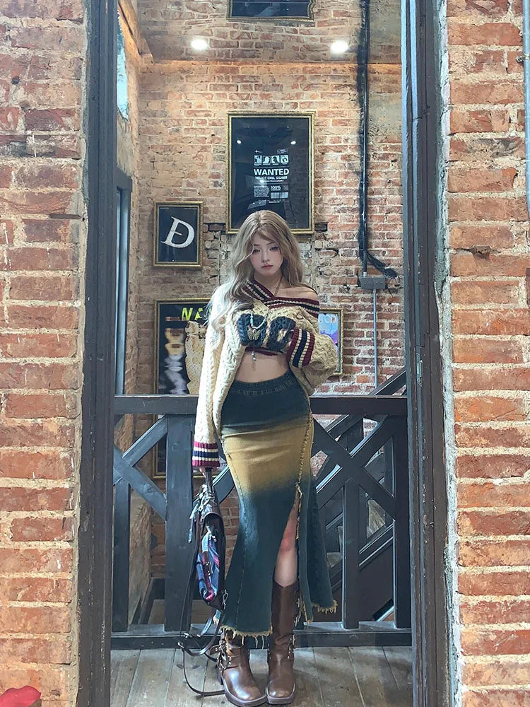 DERMEARNE Oversized Korean Preppy Style Letter Print Loose Sweater Women Fashion V-Neck Design Straight Top Autumn Winter Elegant Pullover