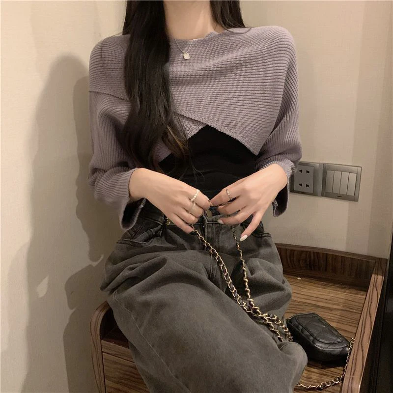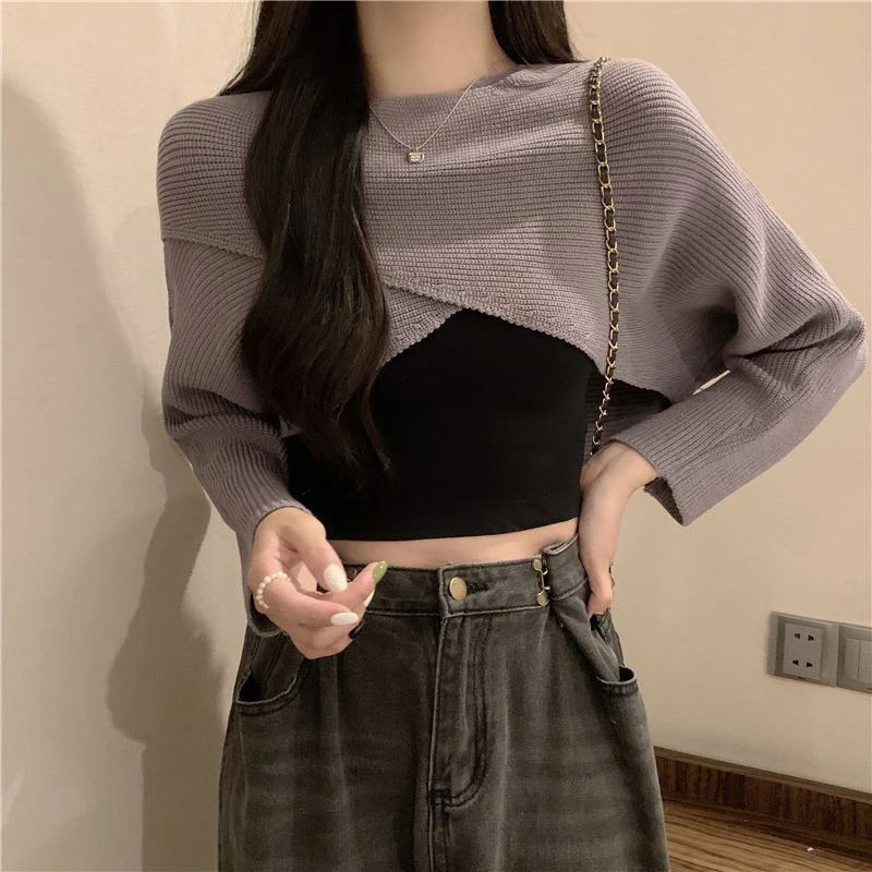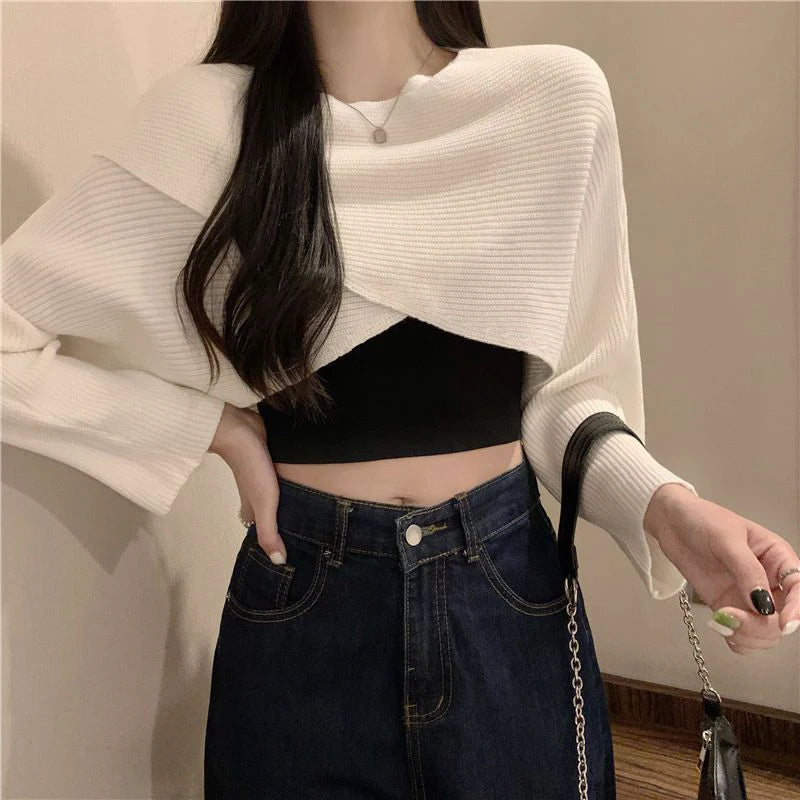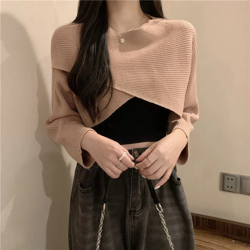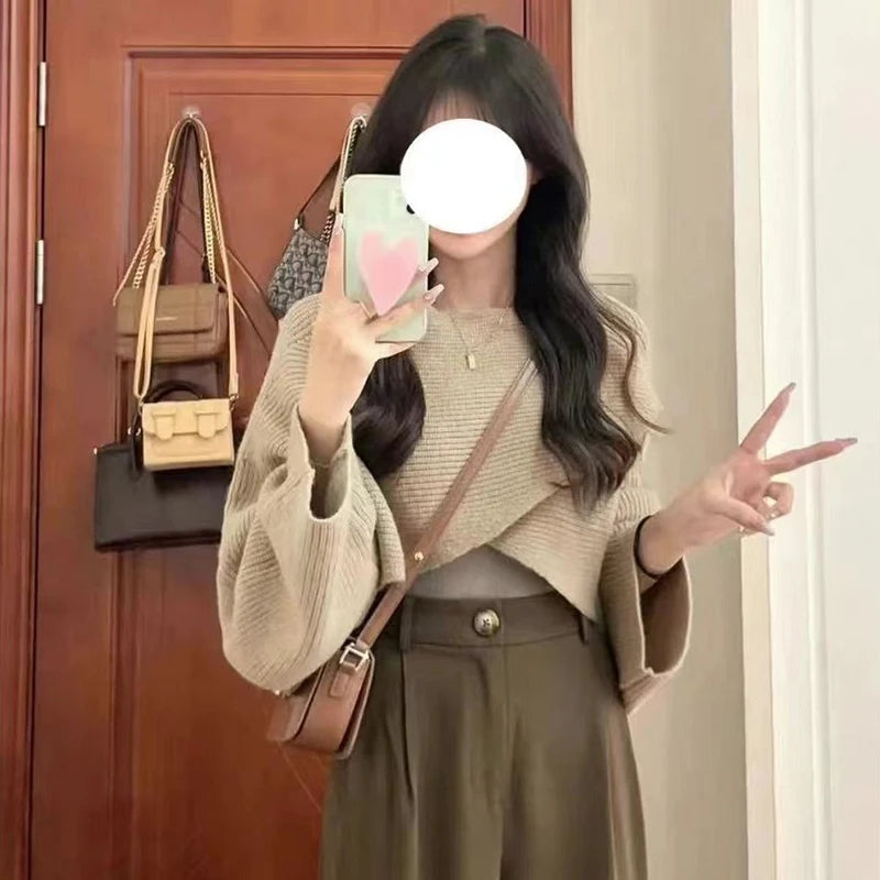 Spring Summer Criss-cross Short Women Loose Sweater Fashion All-match Knitted Pullovers 2023 New Harajuku Casual Crop Clothing