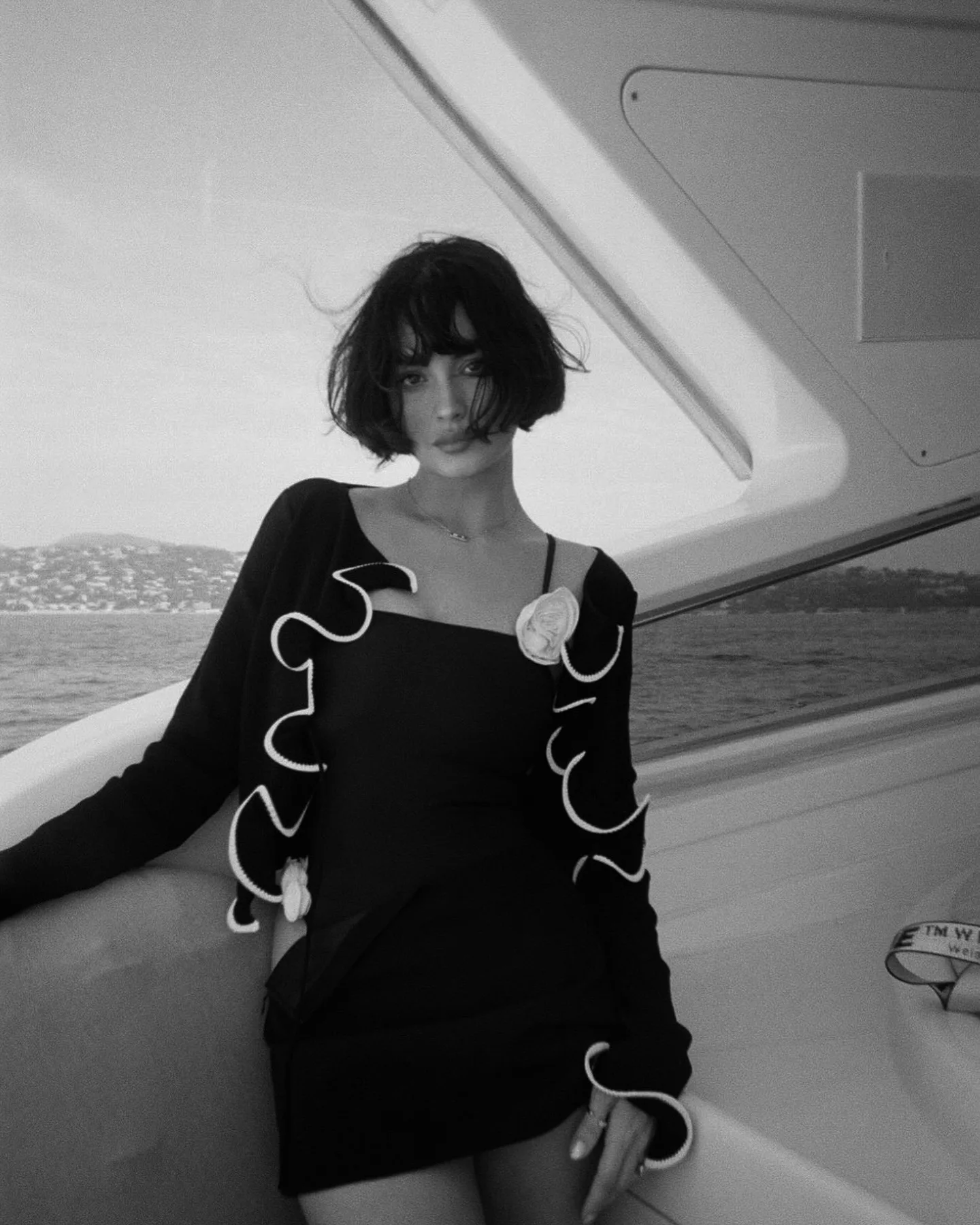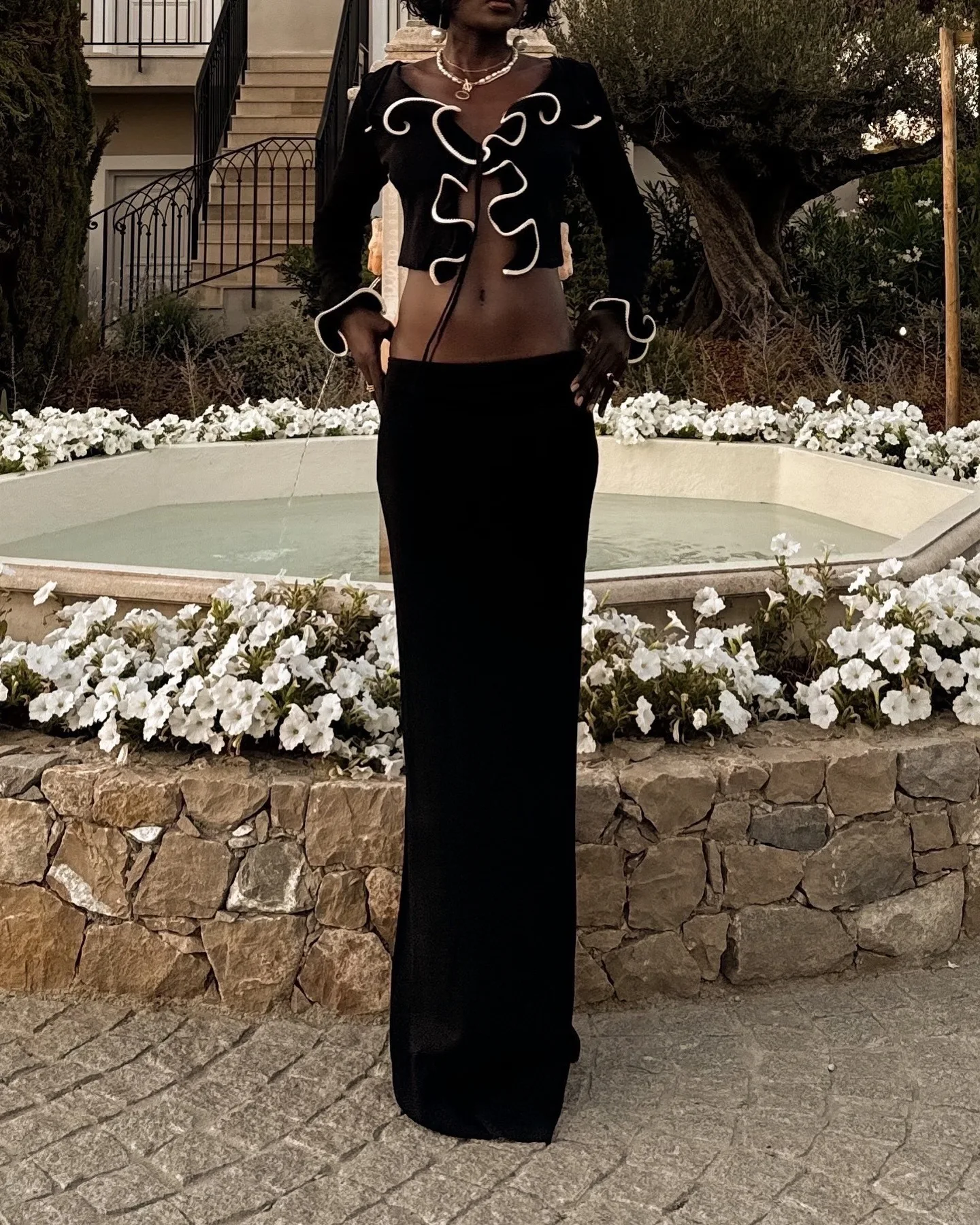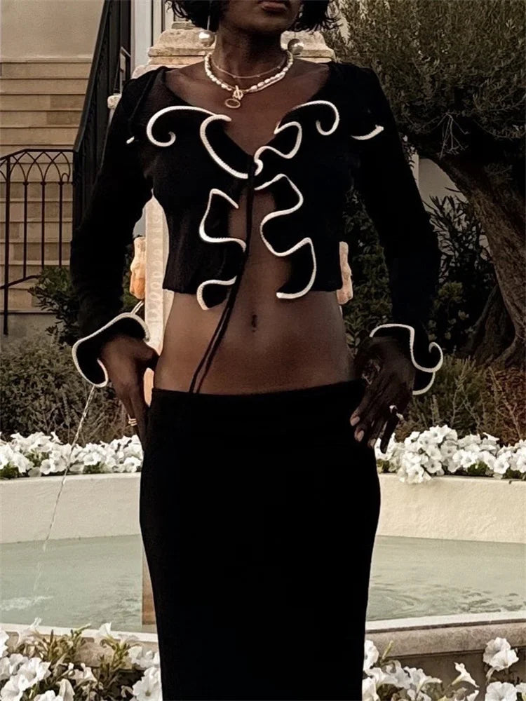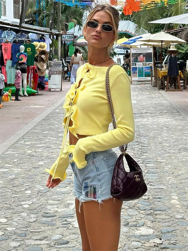 DERMEARNE Tossy Ruffled Knit Sweater Cardigan Female Lace-Up Patchwork Long Sleeve Cropped Top Coat Streetwear Autumn Women's Knitwear Top