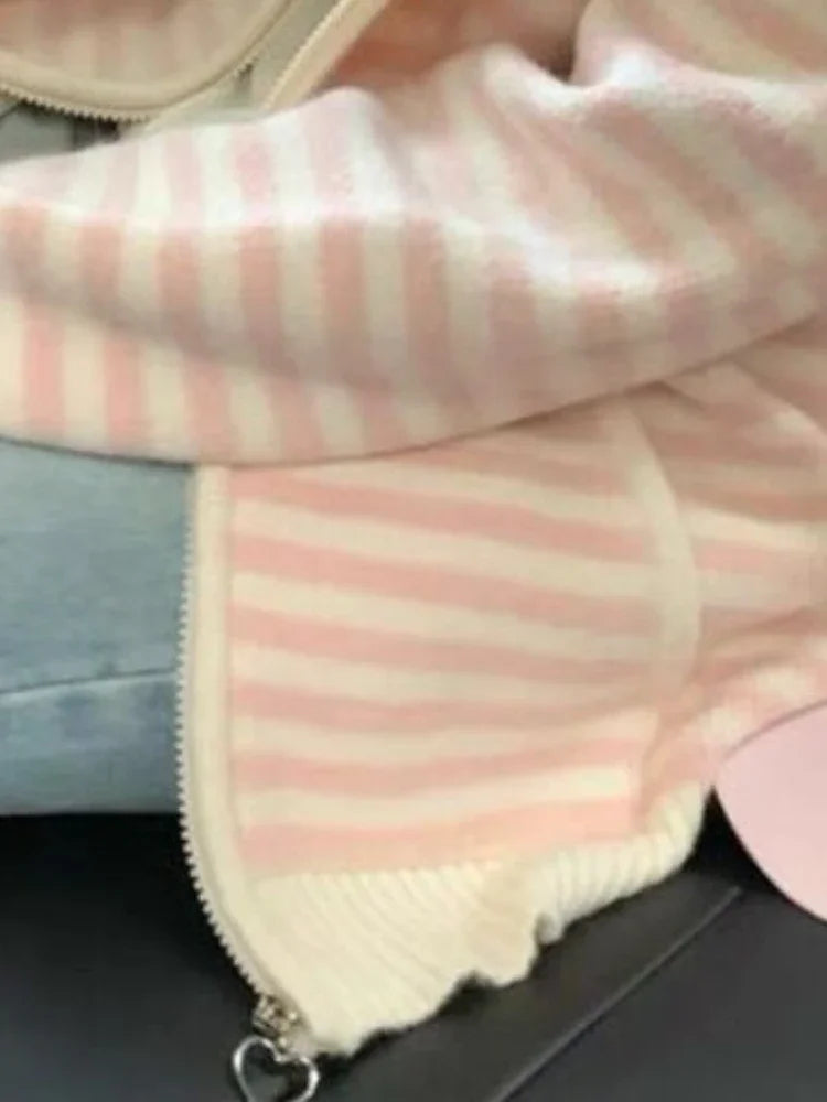 DERMEARNE Y2k Aesthetic Cartoon Embroidery Hooded Cardigans Casual Grunge Contrast Color Stripe Tops Worean Japanese Loose Zipper Sweater