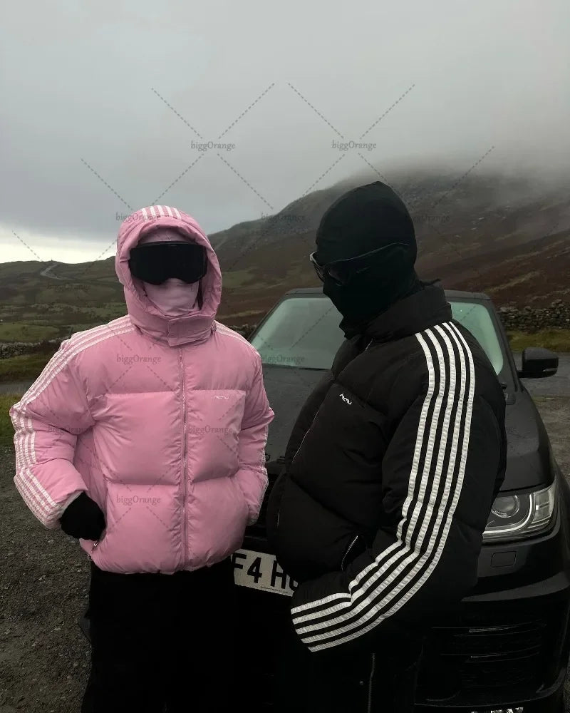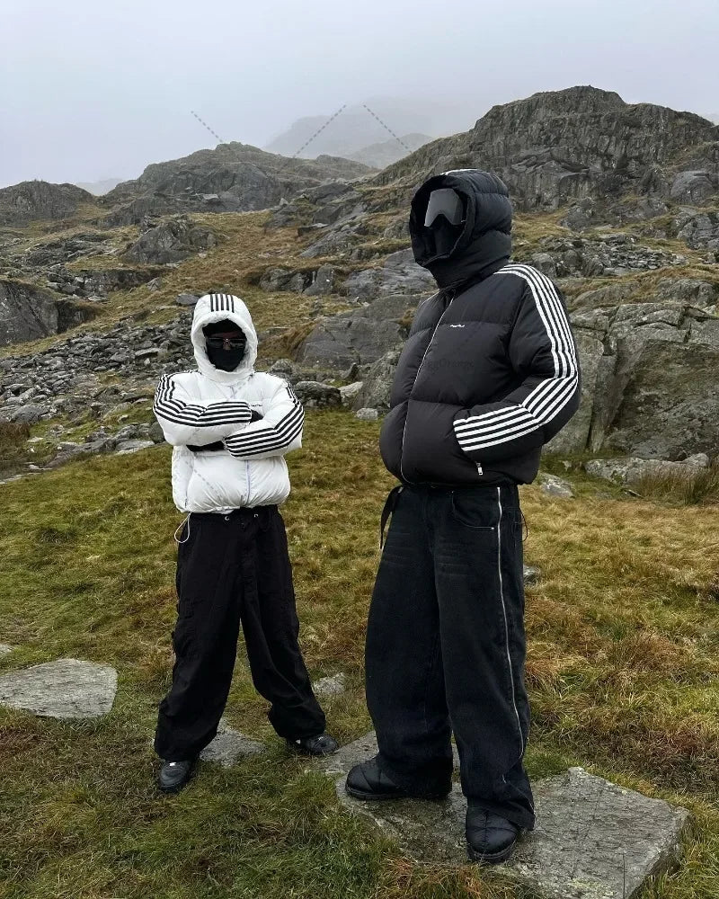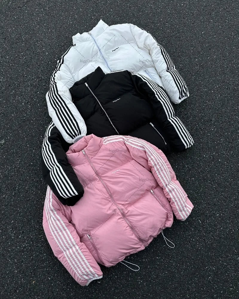 DERMEARNE Y2K Harajuku Trendy Streetwear High Street Retro Striped Warm Zipper Down Sweater Coat Women Punk Colorful Casual Loose Jacket