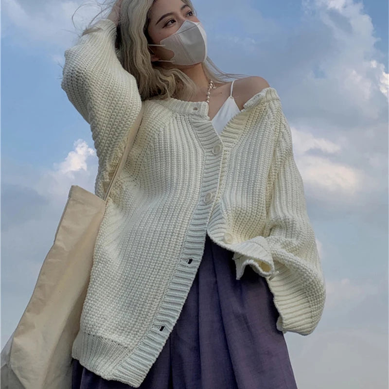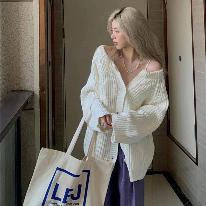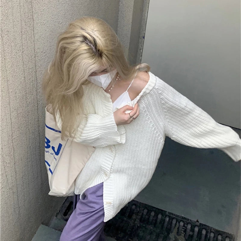 DERMEARNE Y2K Sweet White Women Cardigan Korean Knitted Loose Long Sleeve Female Sweater Preppy Style New All Match Ladies Casual Tops