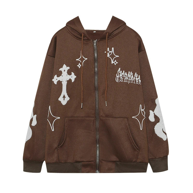 Europe and the United States Autumn and Winter Hoodie Embroidered Cross Fire Jacket Plus Cashmere Lovers Loose Sweater