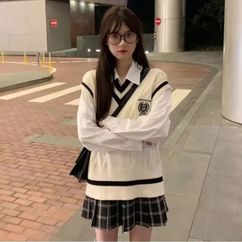 Dermearne New Spring and Autumn Knitted Vest Women's Sweater Korean Edition British Academy Style Sang Wear Versatile Top