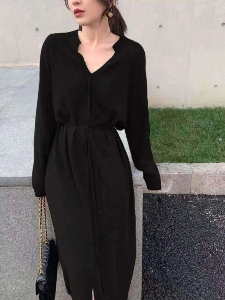 Sweater Dress for Women Autumn Winter Mid Length Underlay Outwear Over Knee Drawstring Waist Elegant Knit Dress Women's Clothing