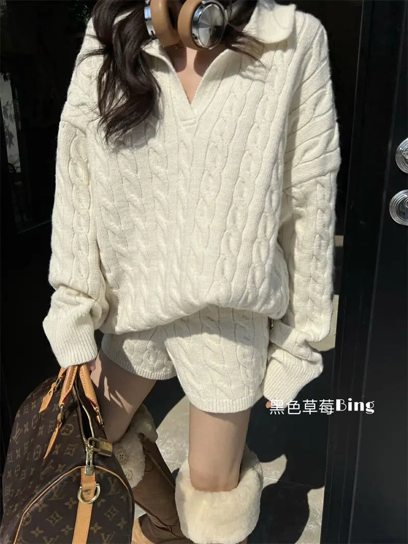 White Basic Women Kint Sweater Long Sleeve Oversized Pullovers Korean Fashion Autumn Jerseys Old Money Casual Jumper