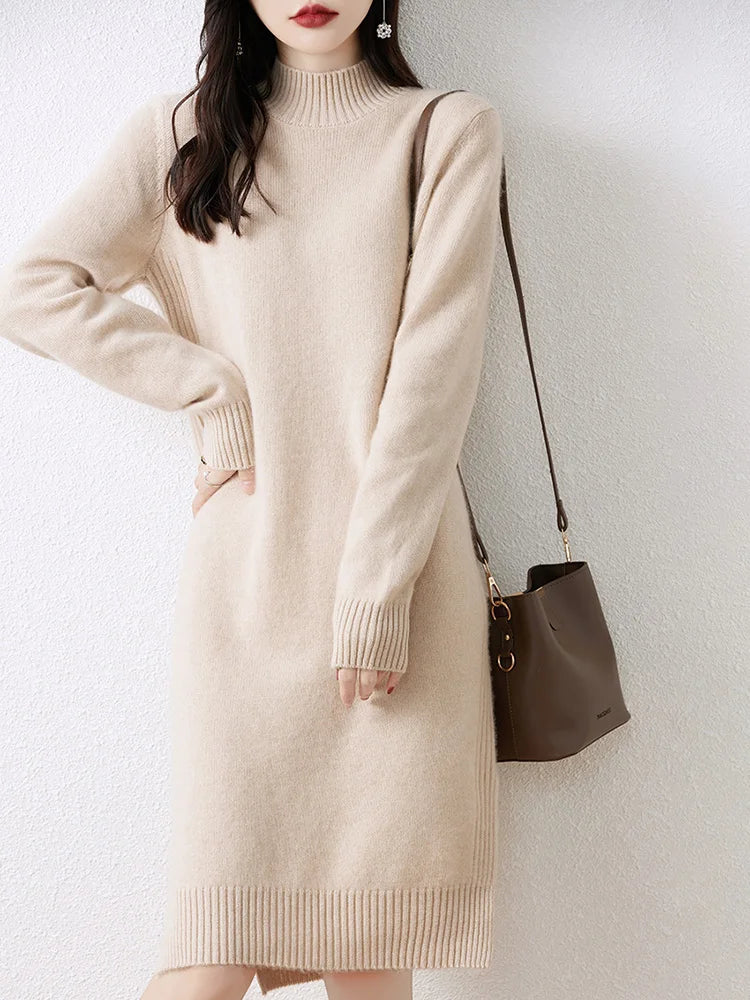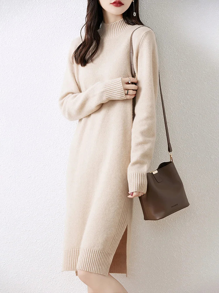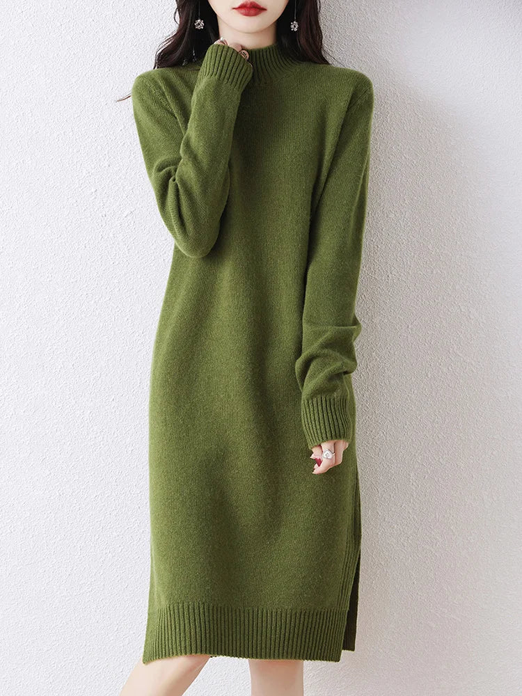 Women's Sweater Dress 100% Merino Wool Knitwear Mock Neck Pullover Cashmere Split Solid Soft Basic Autumn Winter Skirts Clothing
