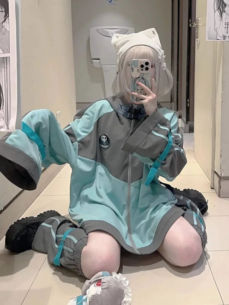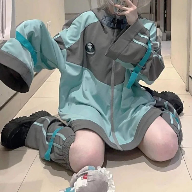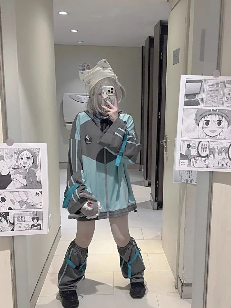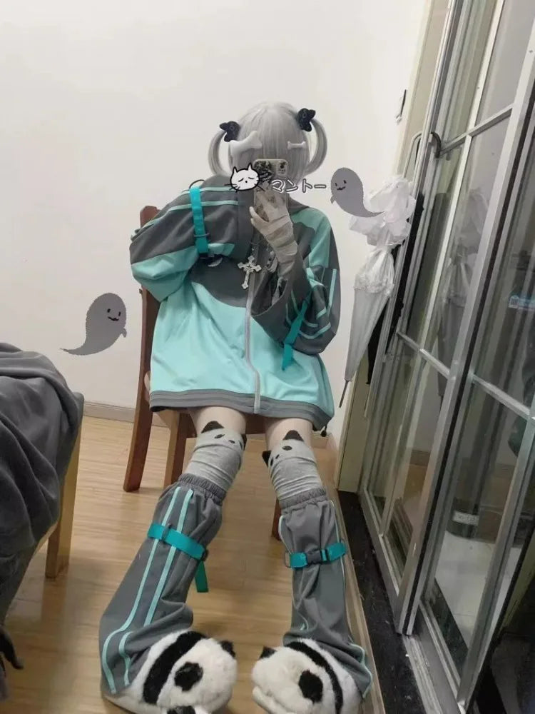 DERMEARNE Harajuku Long Sleeve Hoodie Coat Women Spring Autumn New Thicked Warm Loose Jackets Y2k Grunge Mid-length Loose Tops Mujer