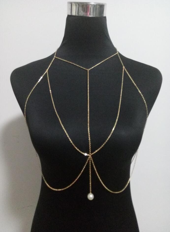Dermearne New Style Fashion Women Gold colour Chains Unique Design Sexy Imitation Pearls Beads Bikini Chains Jewelry 2 Colors