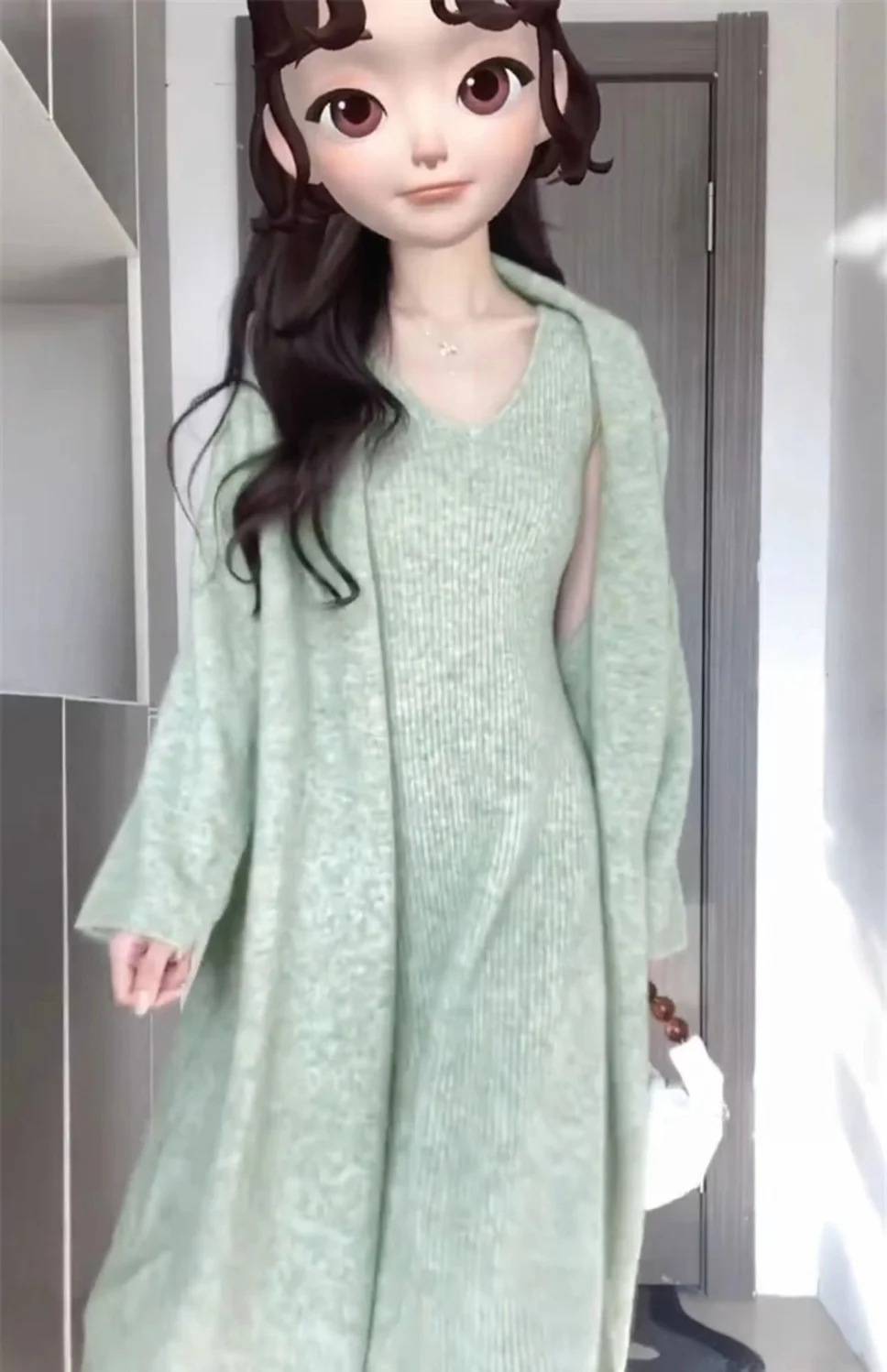 DERMEARNE 2025 New Style French Mid-length Knitted Dress Knitted Cardigan Two-piece Set Thickened for Women vestidos