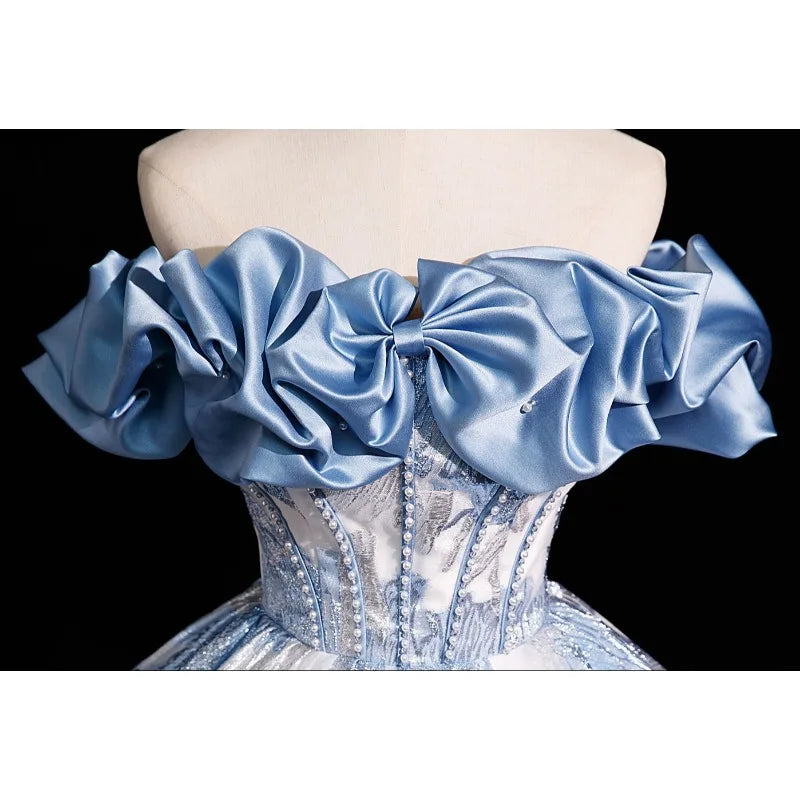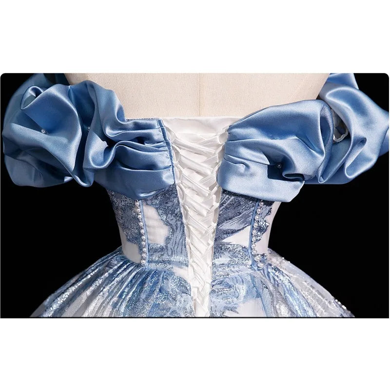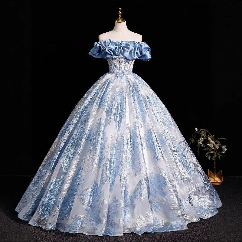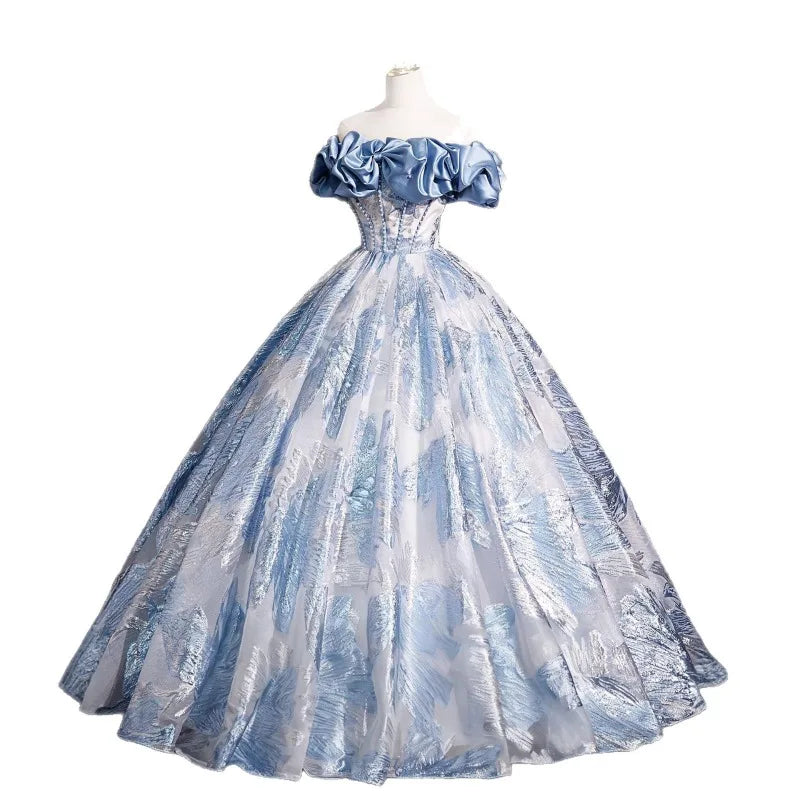 DERMEARNE 2026 New Blue One Shoulder Printed Strapless Evening Dress Fashionable Slimming Art Exam Back Strap Dress Adult Dress