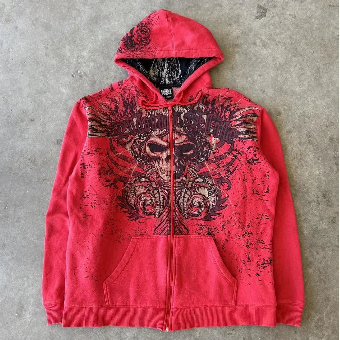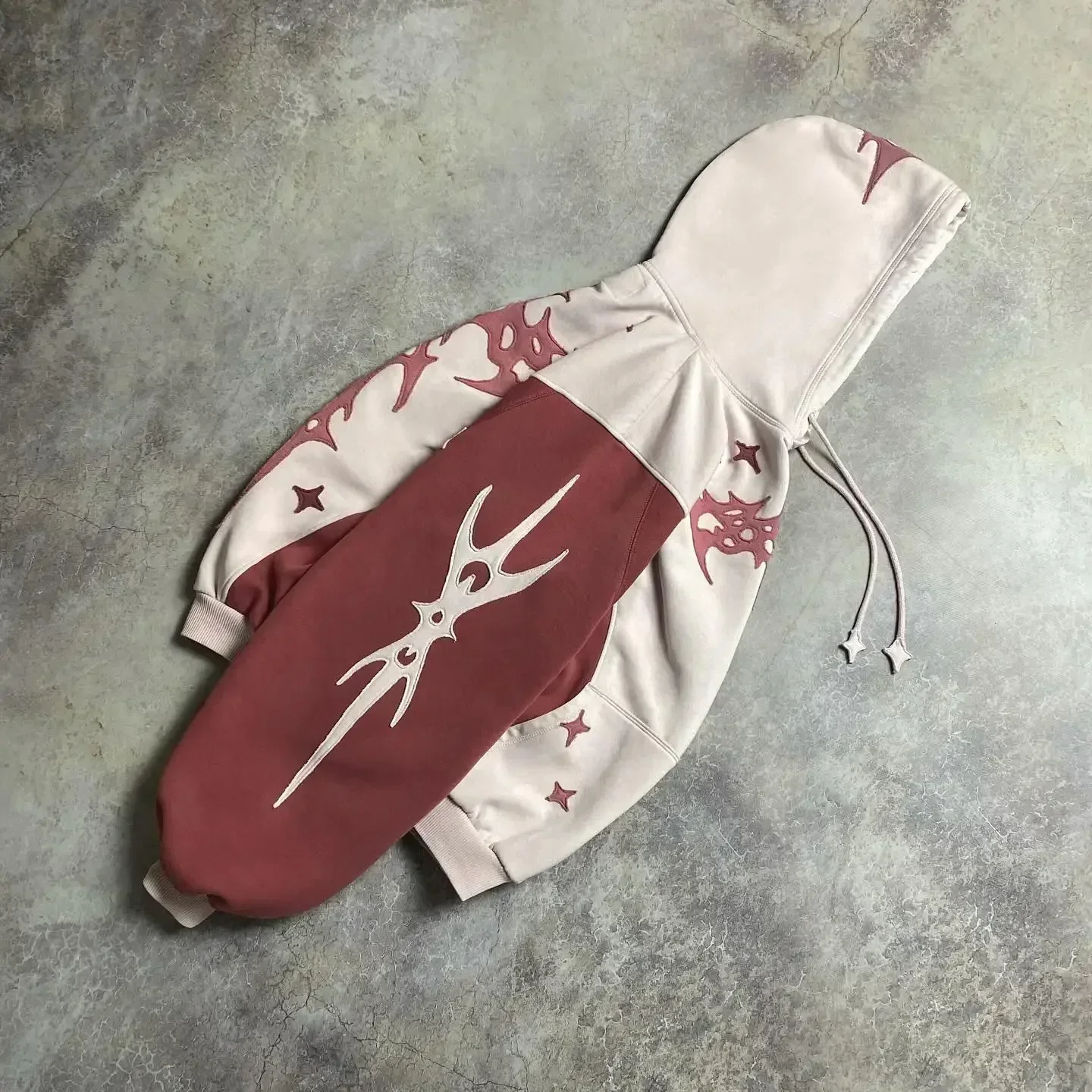 DERMEARNE American Retro Brown Stitching Fashion Sweatshirt Zipper Hoodie Men's And Women's Y2K Harajuku Hip-Hop Gothic Casual Joker Coat