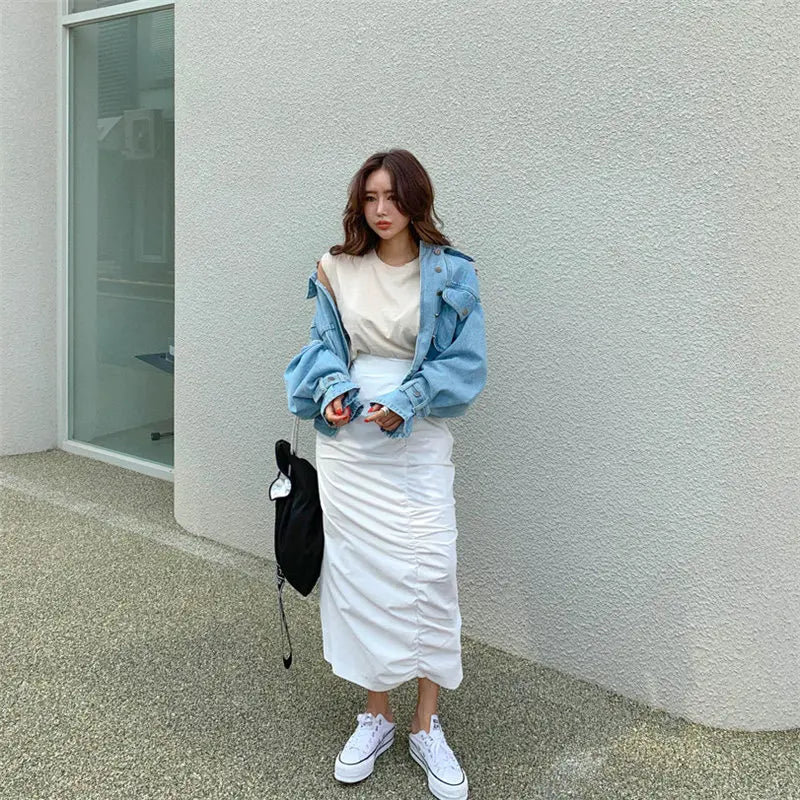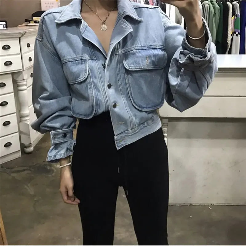 DERMEARNE Autumn Students Chic Denim Casual Feminine BF Style Brief Cowboy Office Lady All-Match Fresh Loose Coat Large Size Tops