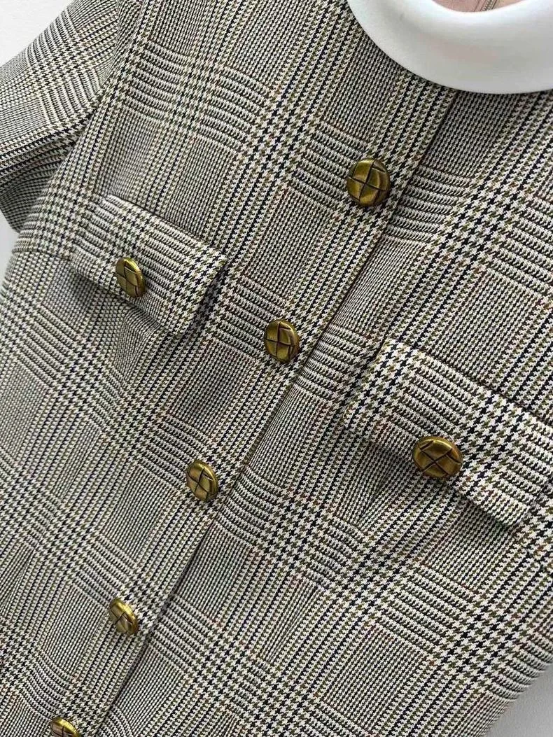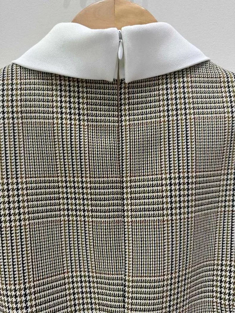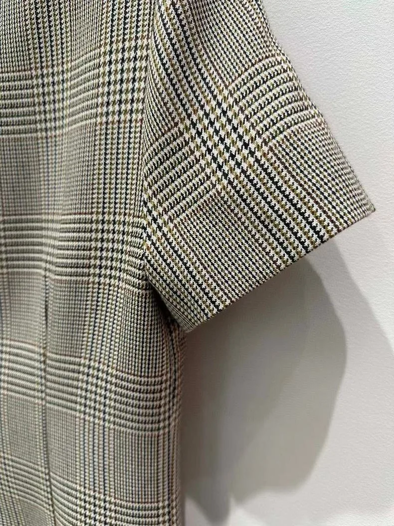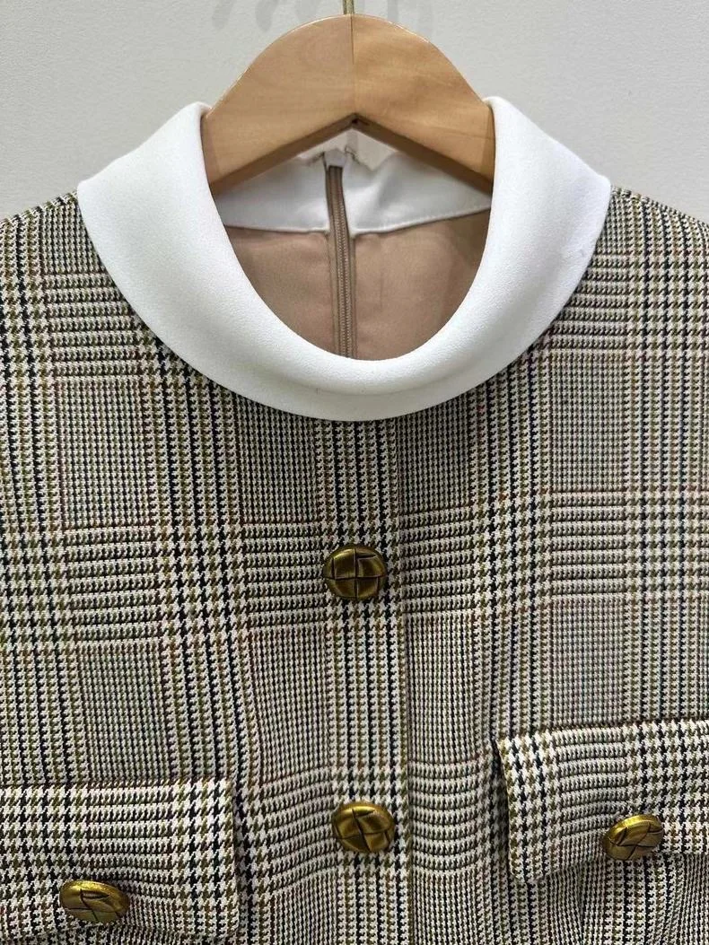 DERMEARNE Color collision high collar plaid dress temperament retro single-breasted short-sleeved women's dress 2025 spring new