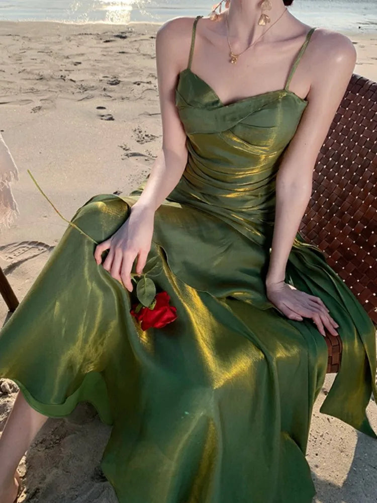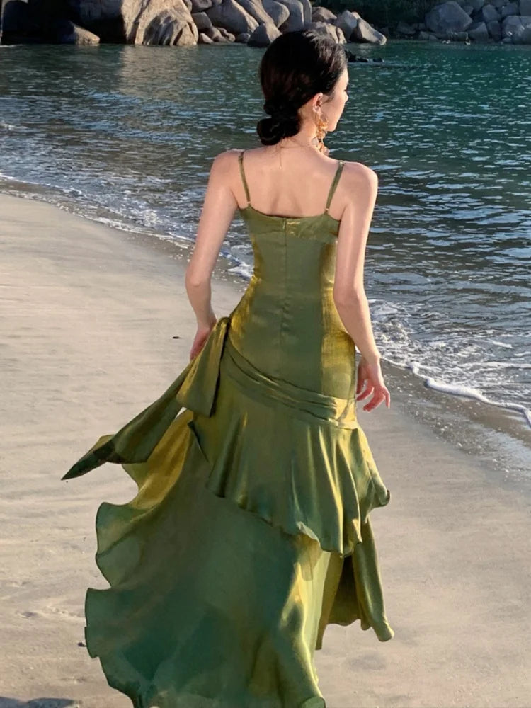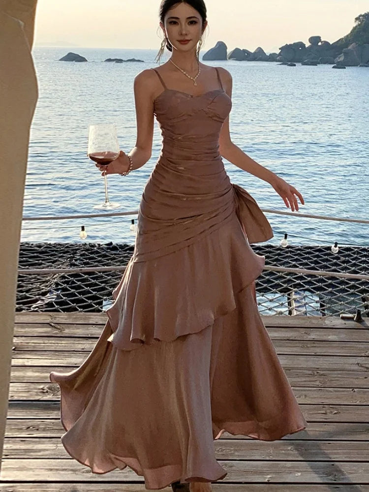 DERMEARNE Elegant Ruffles Party Dress for Women Sexy Spaghetti Strap Sleeveless Princess Evening Dresses Summer Holiday Beach Vestidos New