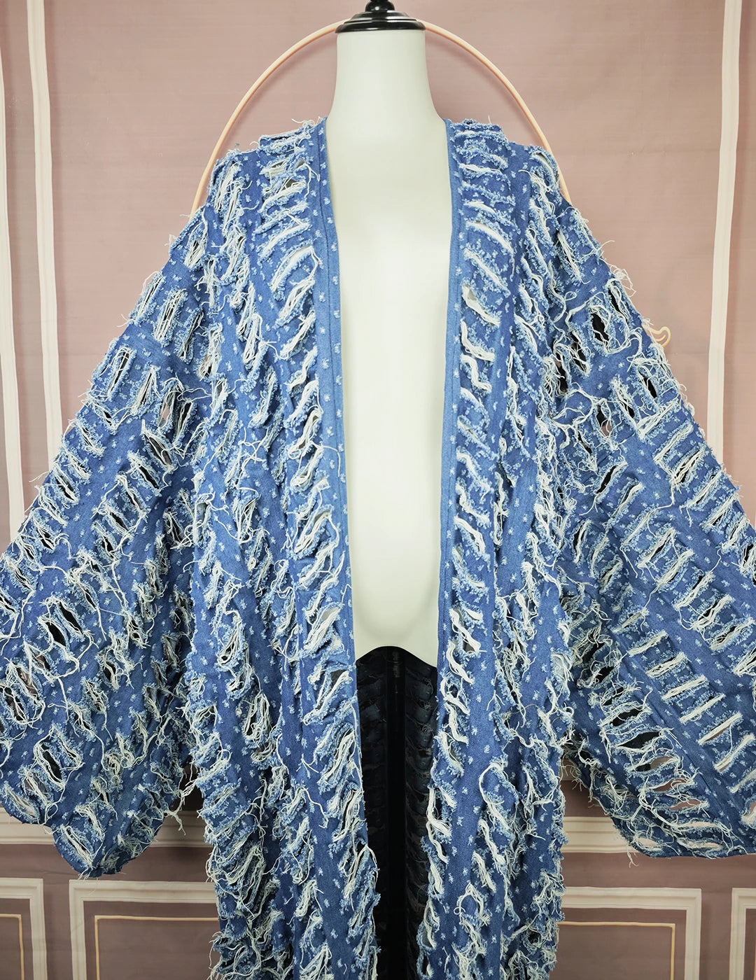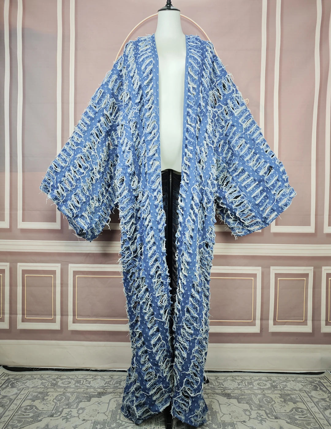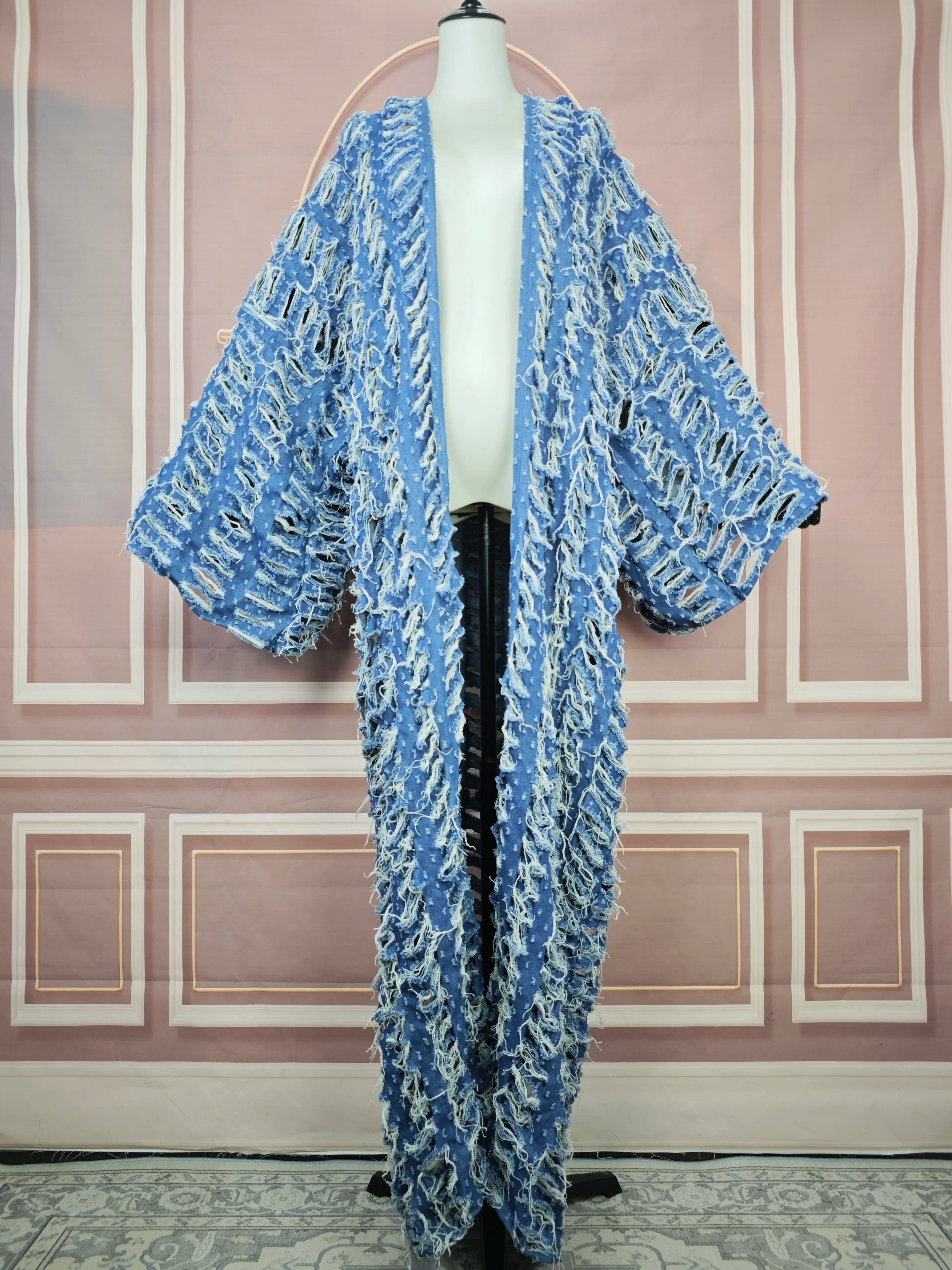 DERMEARNE Fashion Blogger Recommend New Fashion Hollow Denim Spring Loose Cardigans Casual African Lady Swimsuit Cover Up Long Coat
