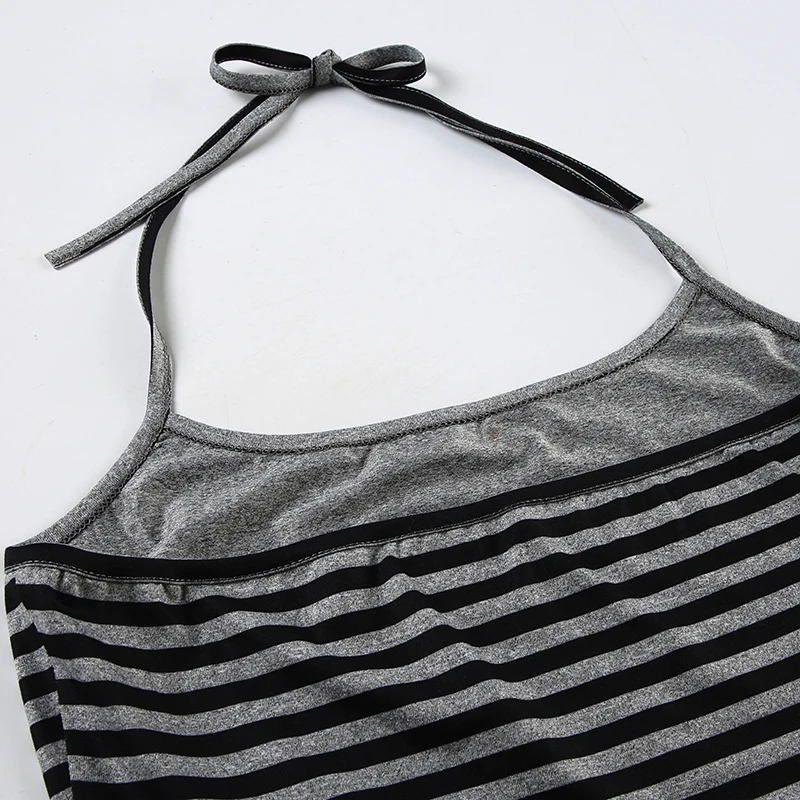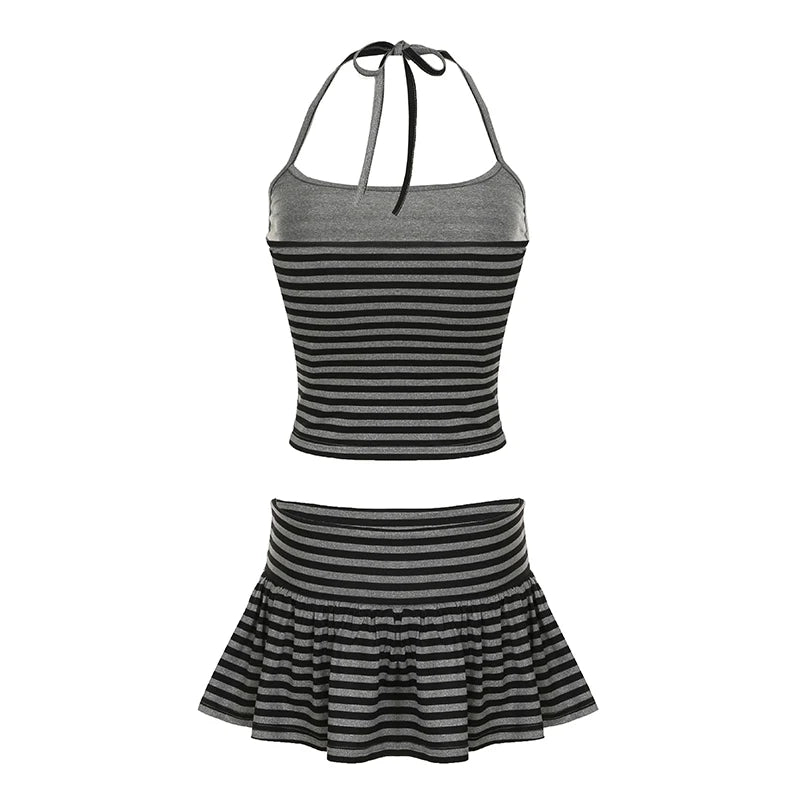 DERMEARNE Fashion Stripe Simple Halter Tops + A-Line Mini Skirts Women’ Set Causal Design Trendy Clothing