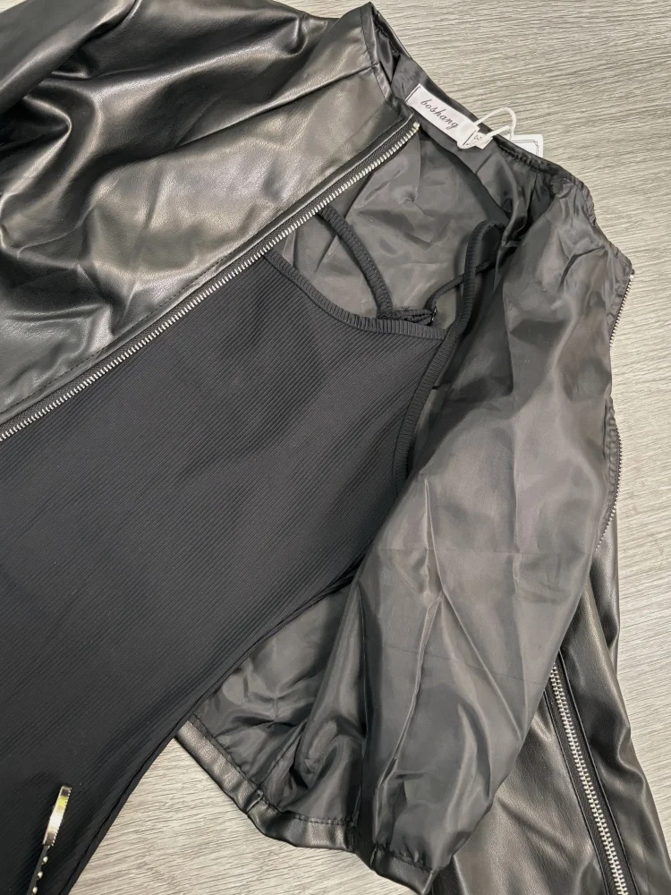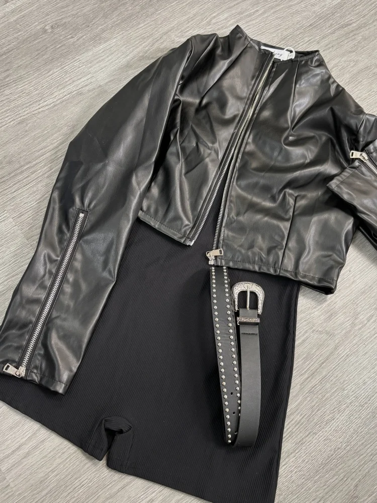 DERMEARNE Gothic Sexy Y2k Two Piece Set Women Korean Casual High Street Retro Suit Female Elegant Leather Tops + High Waist Jumpsuit 2025