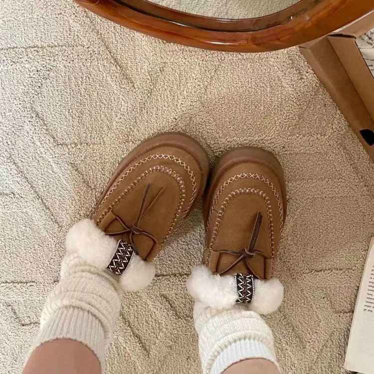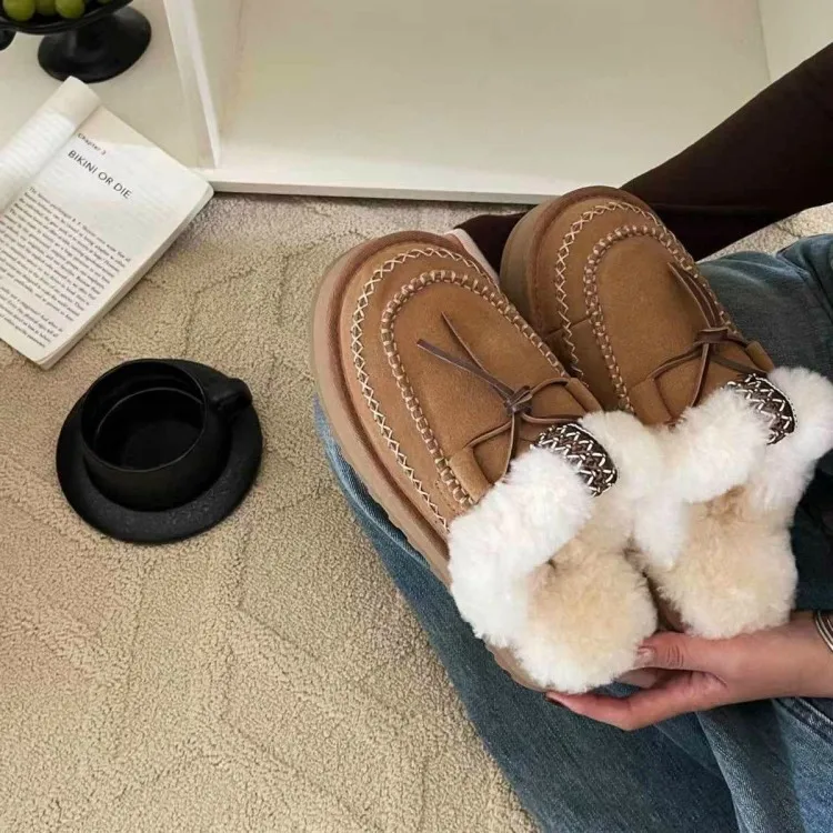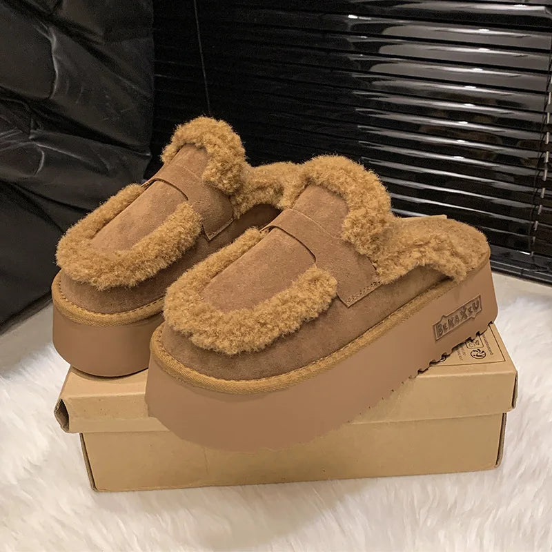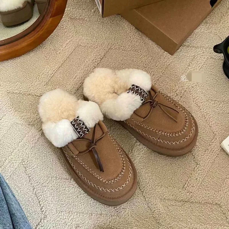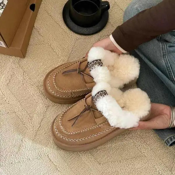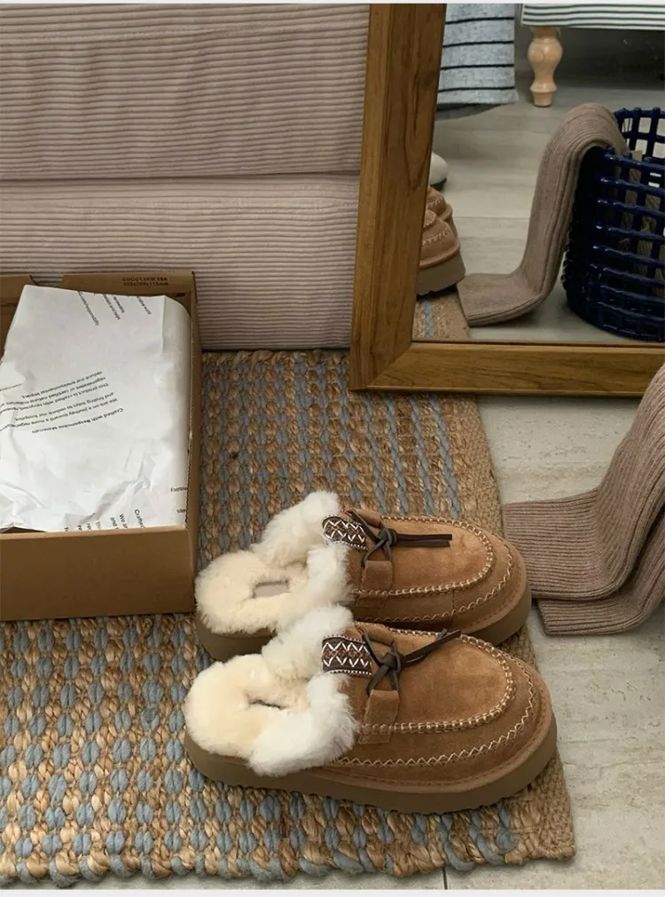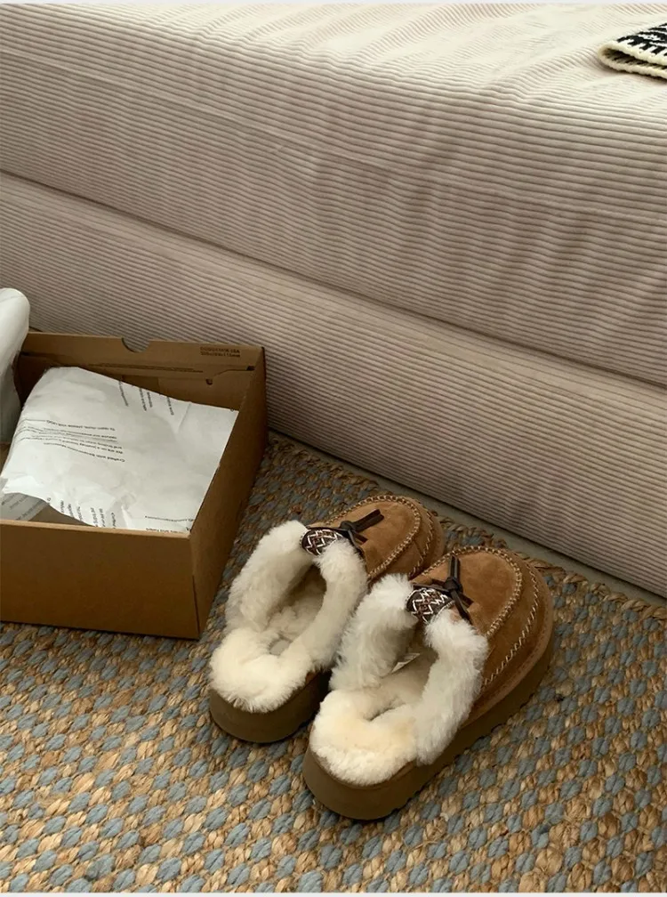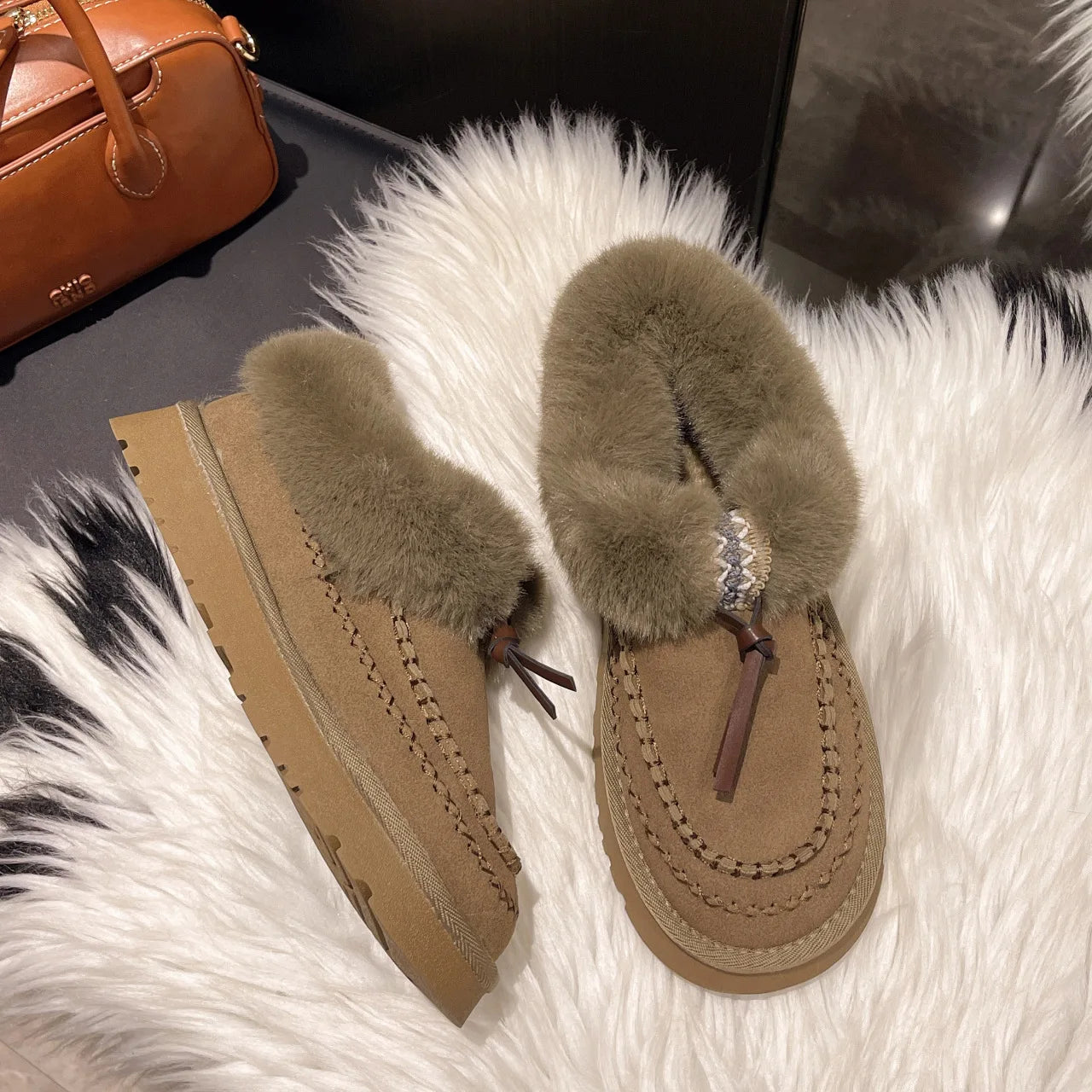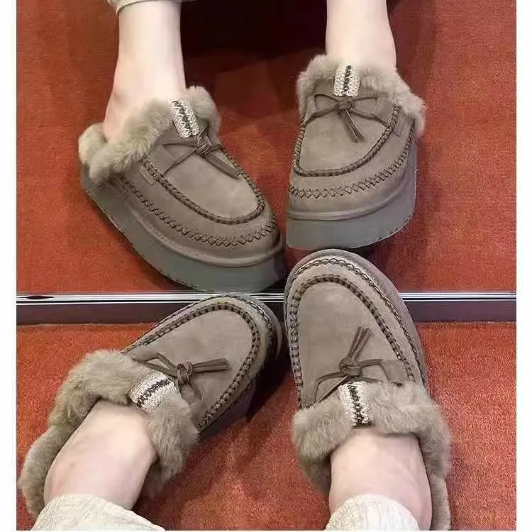 DERMEARNE House Slippers Platform Butterfly-Knot Shoes Woman 2025 Winter Footwear Fur Flip Flops Cover Toe Pantofle Soft Plush New Slides