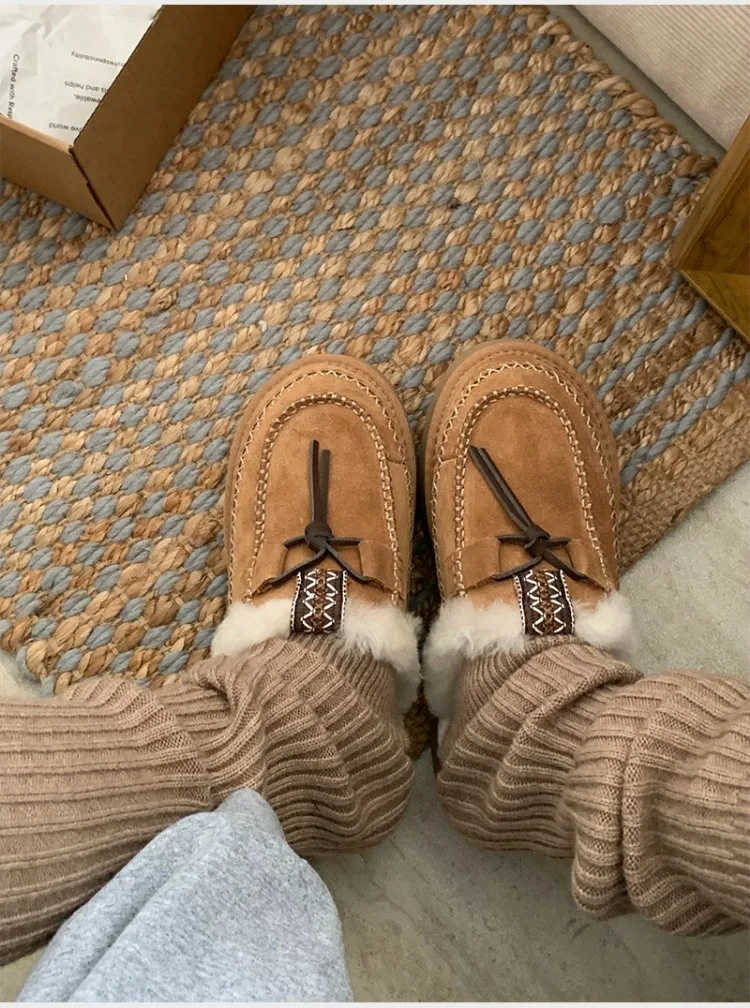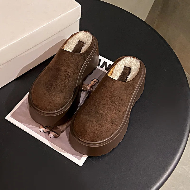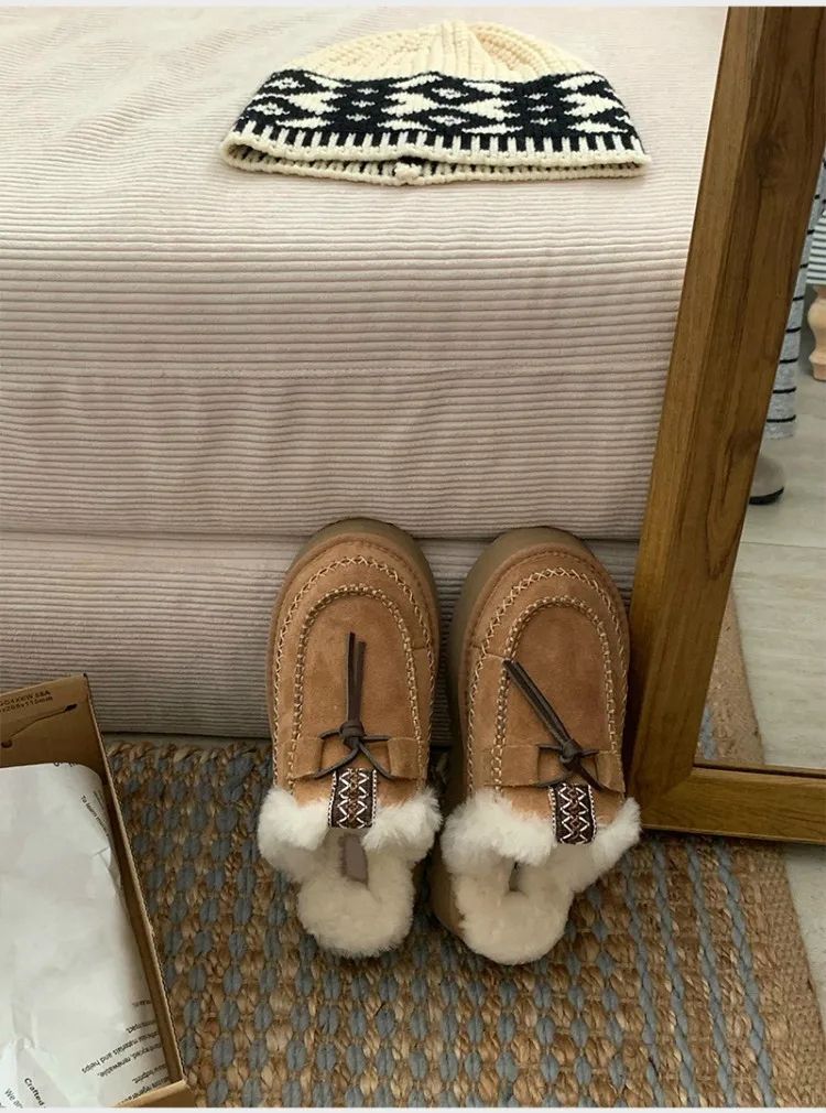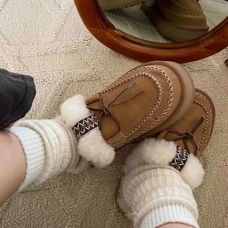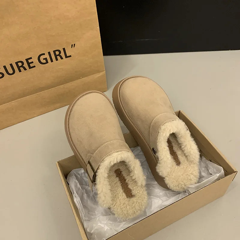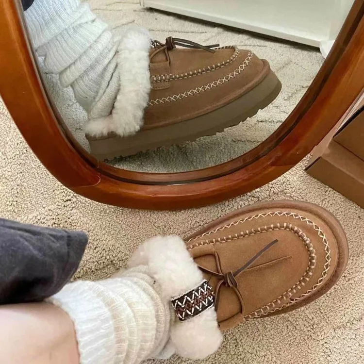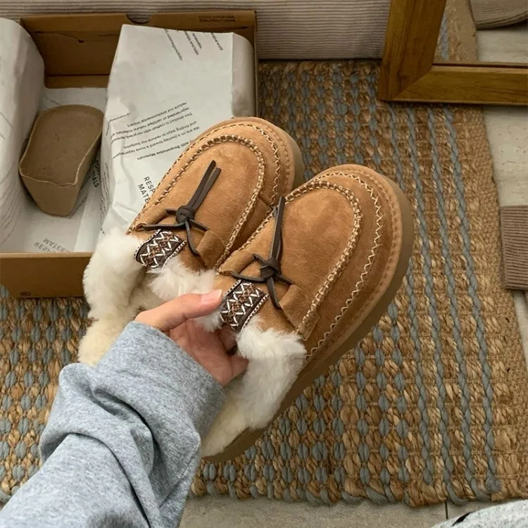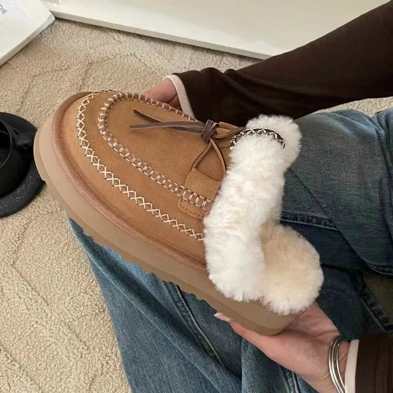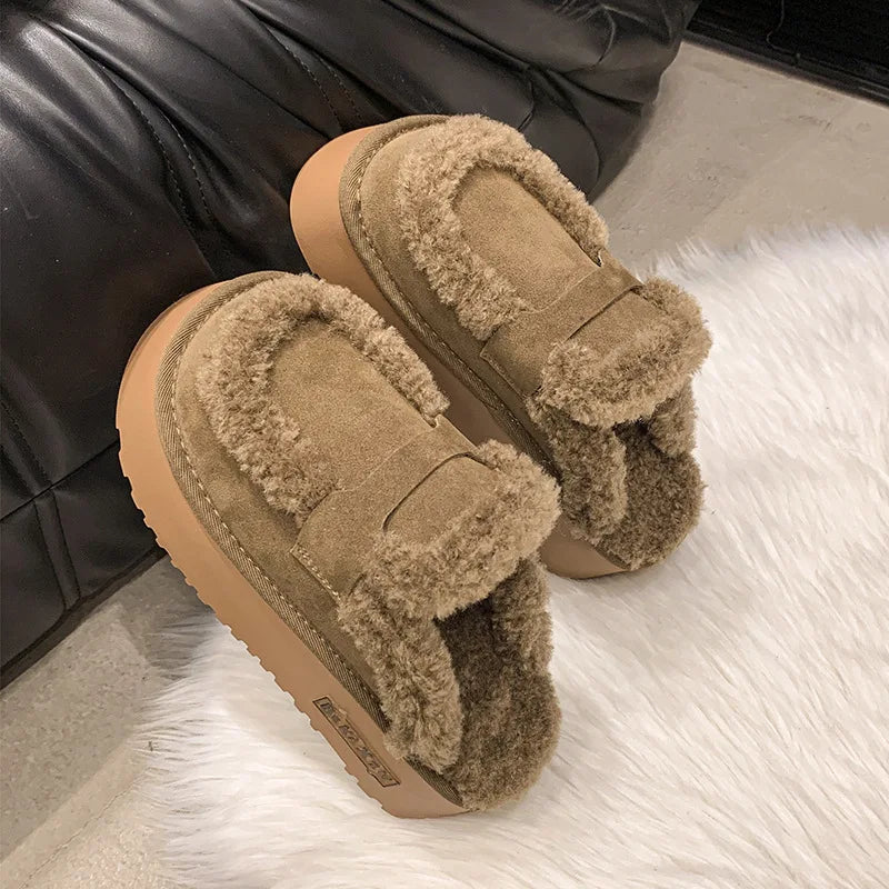 DERMEARNE House Slippers Platform Butterfly-Knot Shoes Woman 2025 Winter Footwear Fur Flip Flops Cover Toe Pantofle Soft Plush New Slides