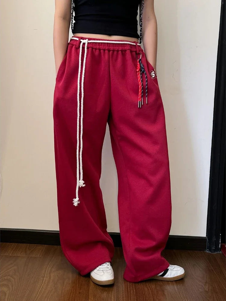 DERMEARNE HOUZHOU Y2k Kpop Red Sweatpants Women Baggy Harajuku Korean Hip Hop Style Wide Leg Jogger Pants Streetwear Oversized Aesthetic