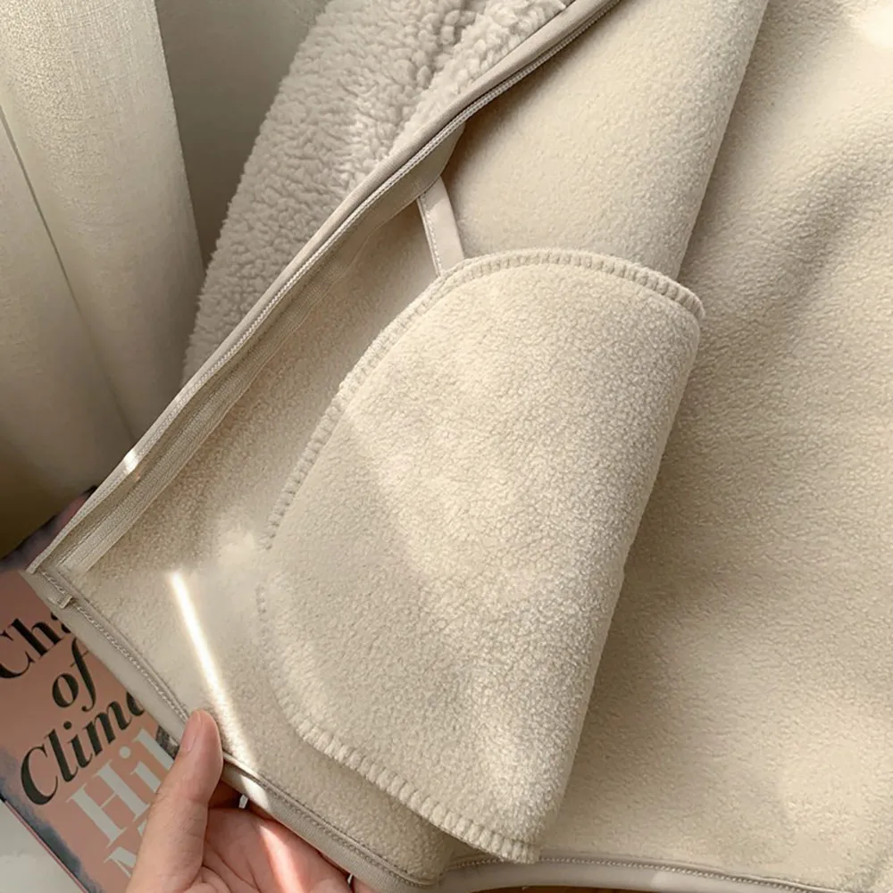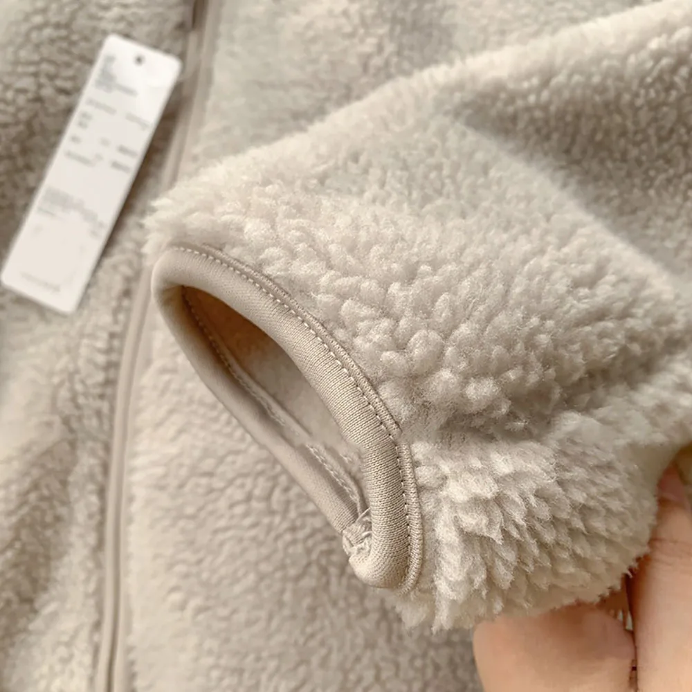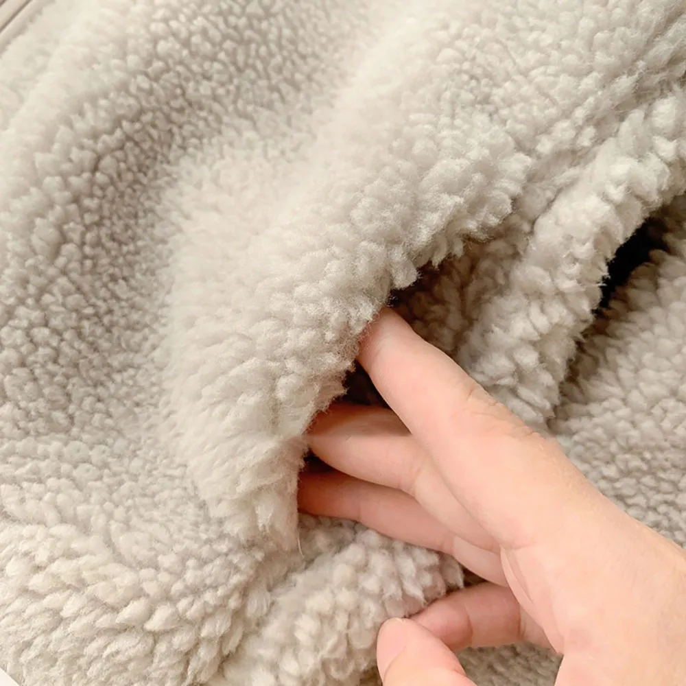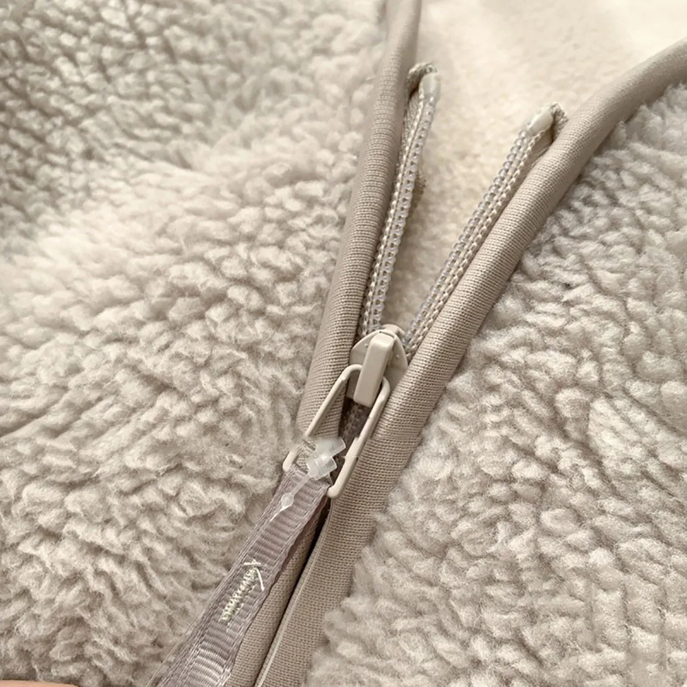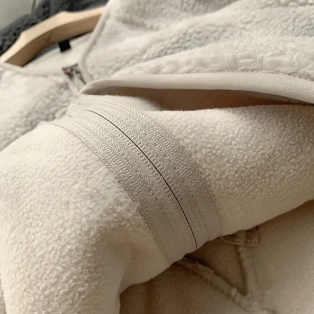 DERMEARNE Korean Version Autumn Winter Women's New Coat Soft Lamb Wool V-Neck Zipper Thicken Warm Fleece Jacket Solid Texture Short Coat