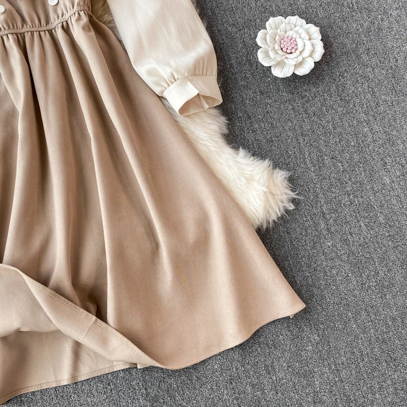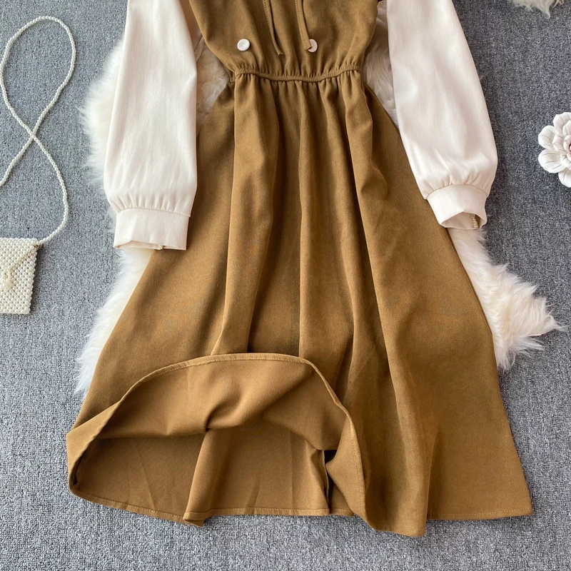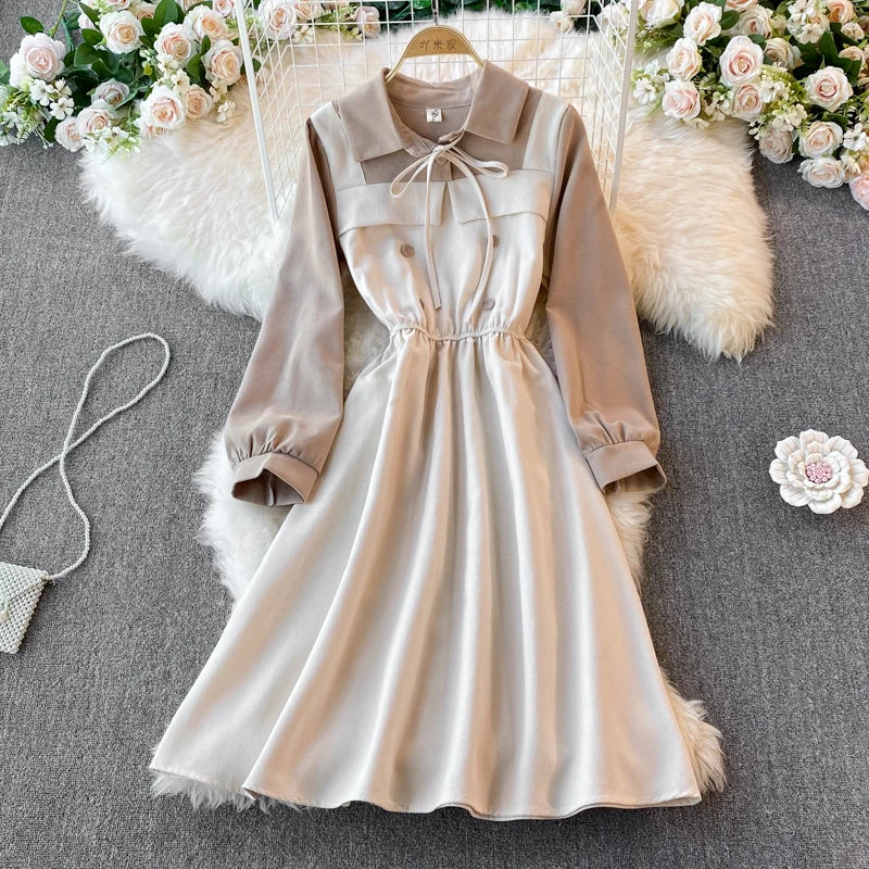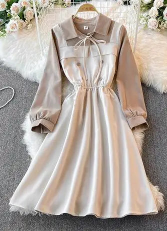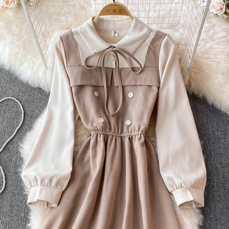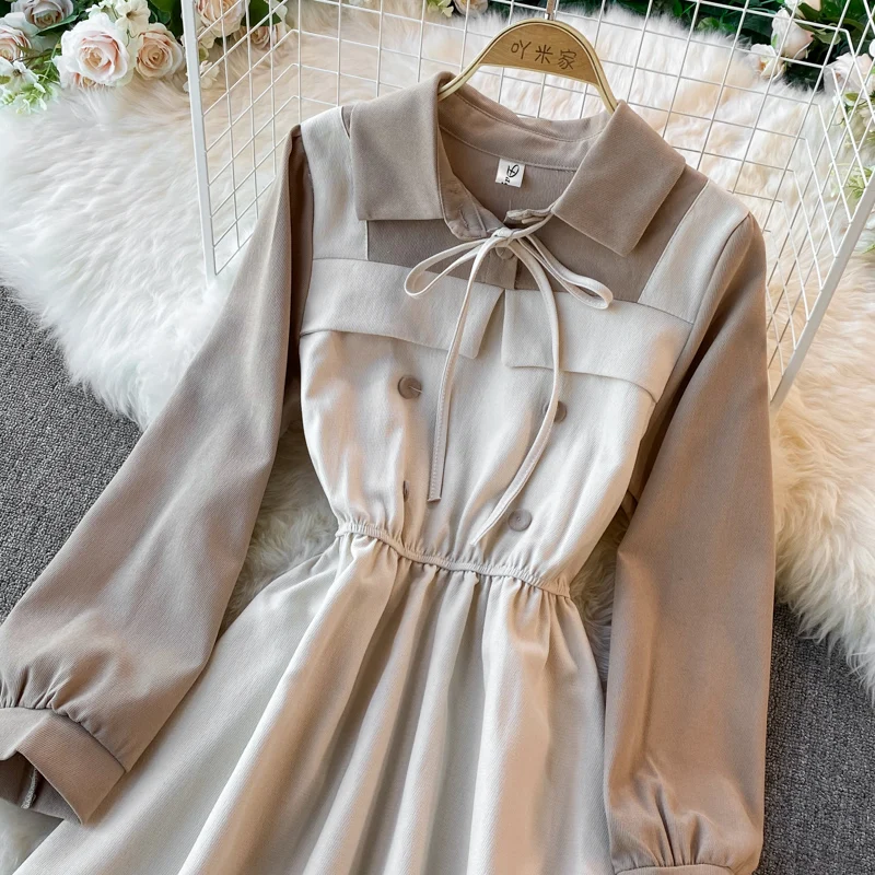 DERMEARNE New Spring Autunmn Long Sleeve Corduroy Dress Women Sweet Tie Bow Patchwork Shirt Dresses Female A Line Large Hem Long Vestidos