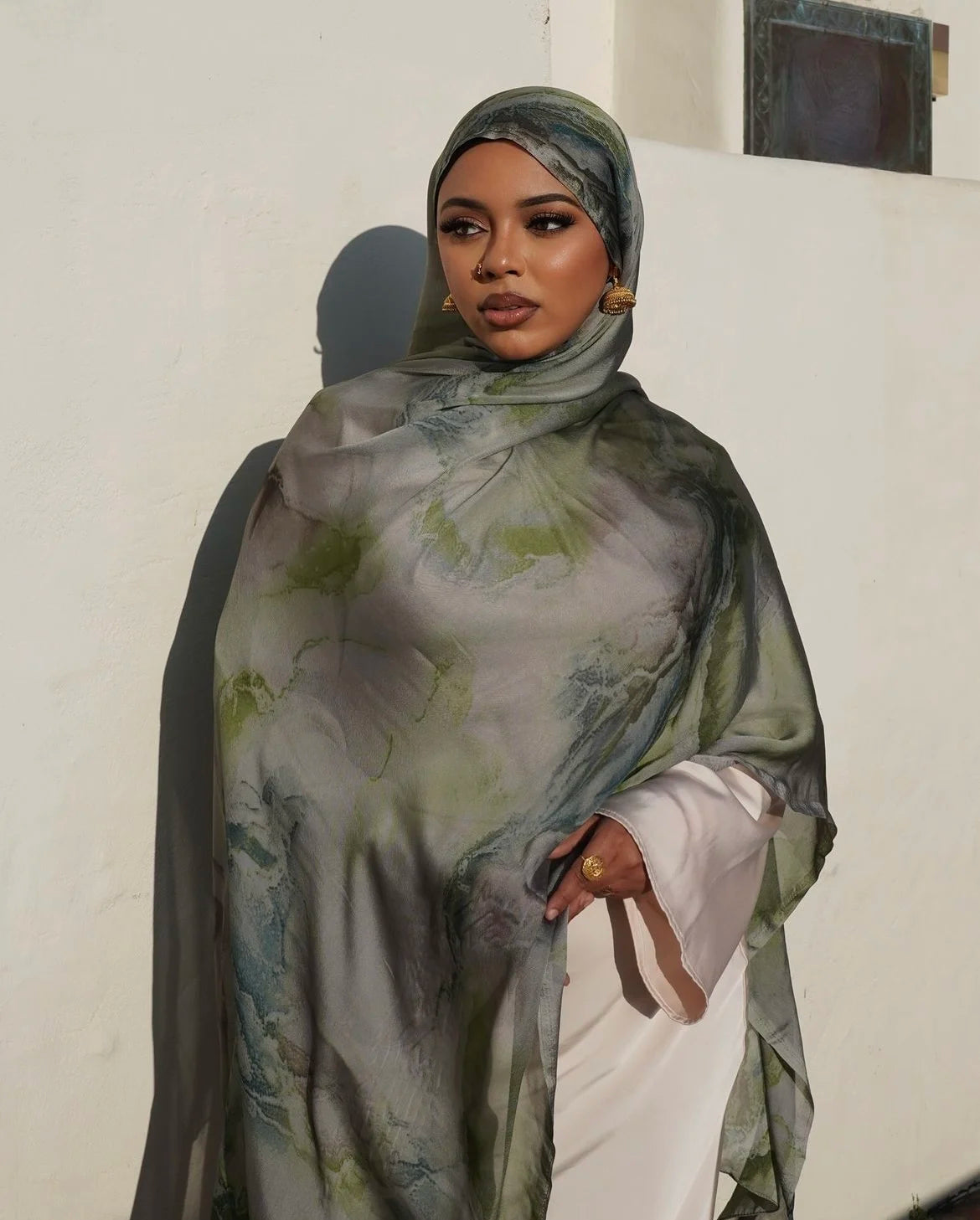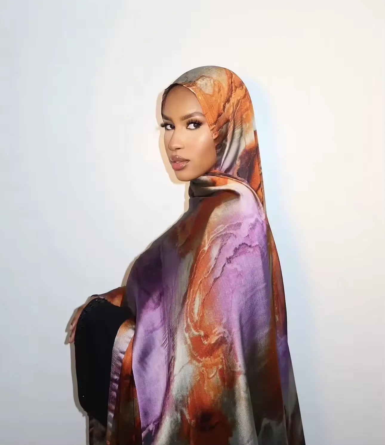 DERMEARNE New Style Malaysian Plain Crinkle Satin Chiffon Hijabs for Women in Satin Dubai Kuwaiti Satin Ribbon Ombre Vela Watercolor Hijab