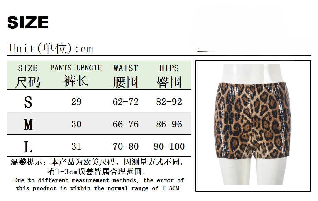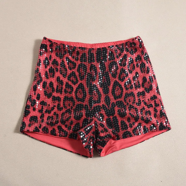DERMEARNE Sexy Sequined Beaded Shorts Women's New Leopard Print Elastic Hot Pants Booty Shorts
