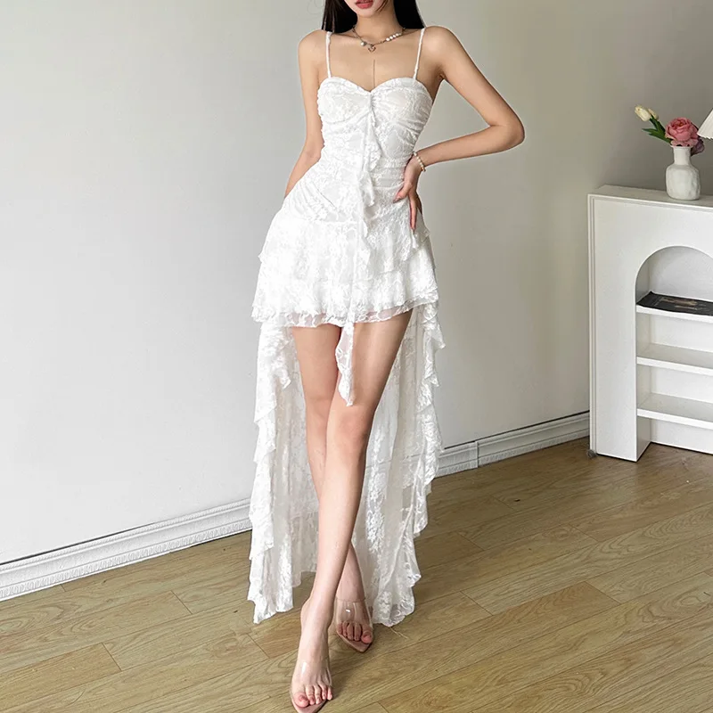 DERMEARNE Summer New Women's Solid Color Slim Fit Street Fashion High Waist Sling Open Back Dress