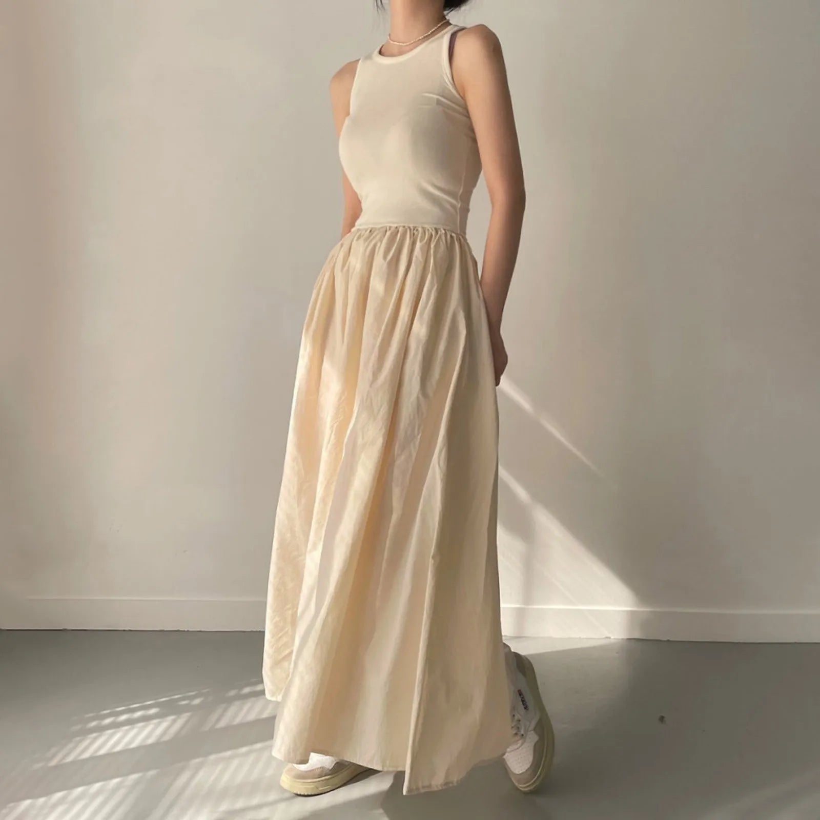 DERMEARNE Summer Sleeveless Maxi Vest Dress For Women 2025 Elegance Slim Fit Flowy Tank Dresses With Pockets High Waist Pleated Vestidos