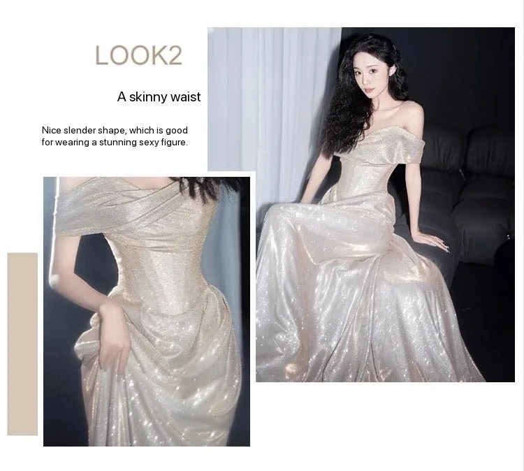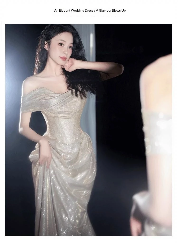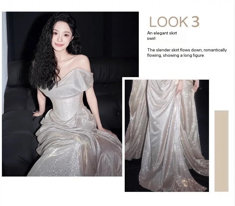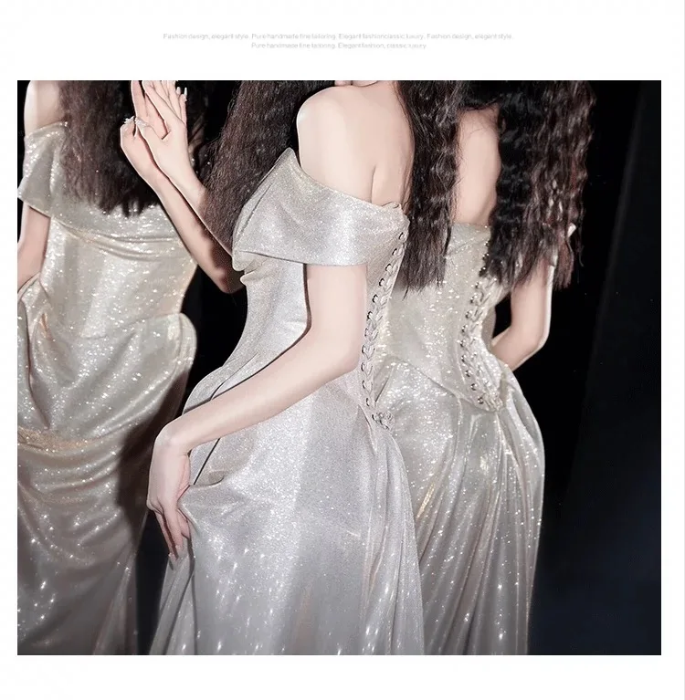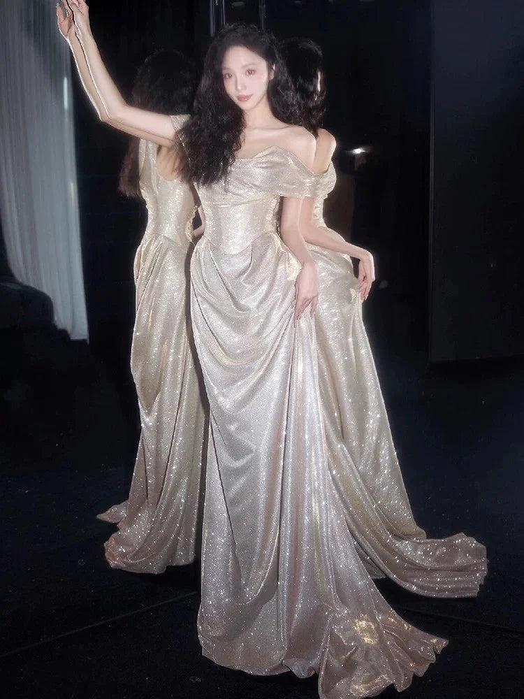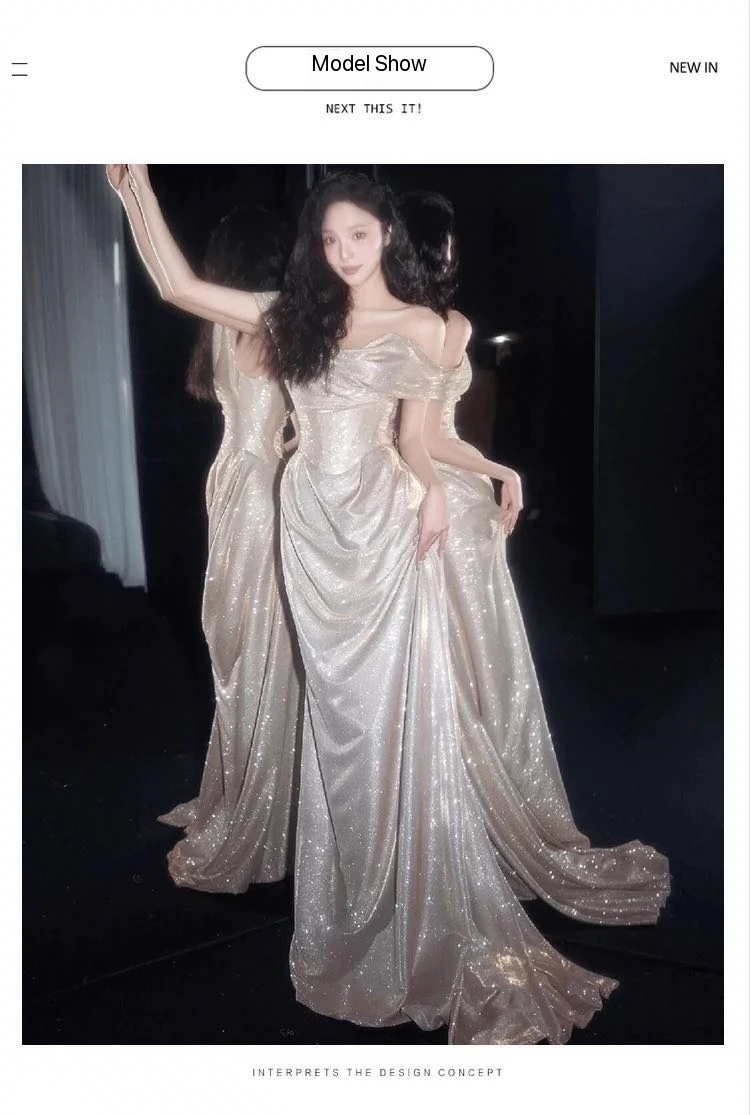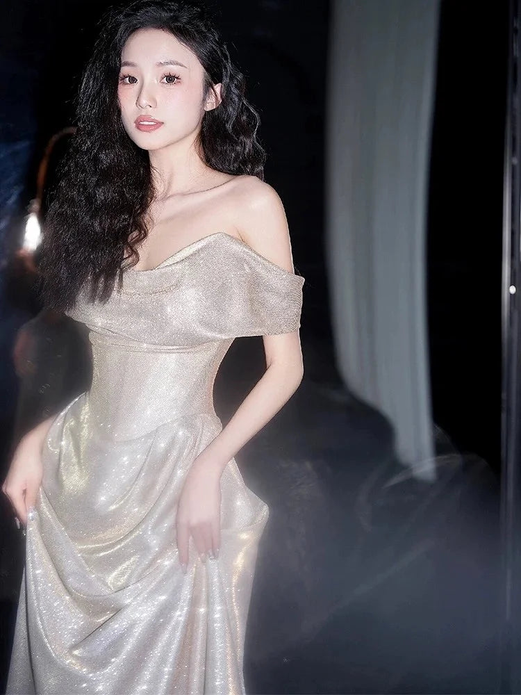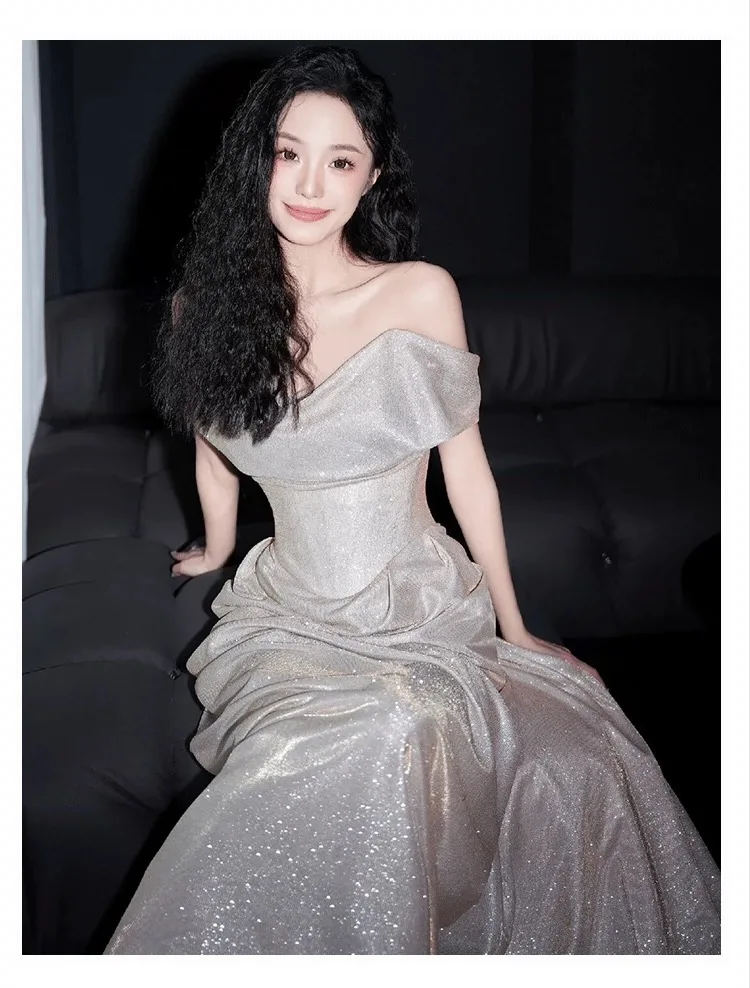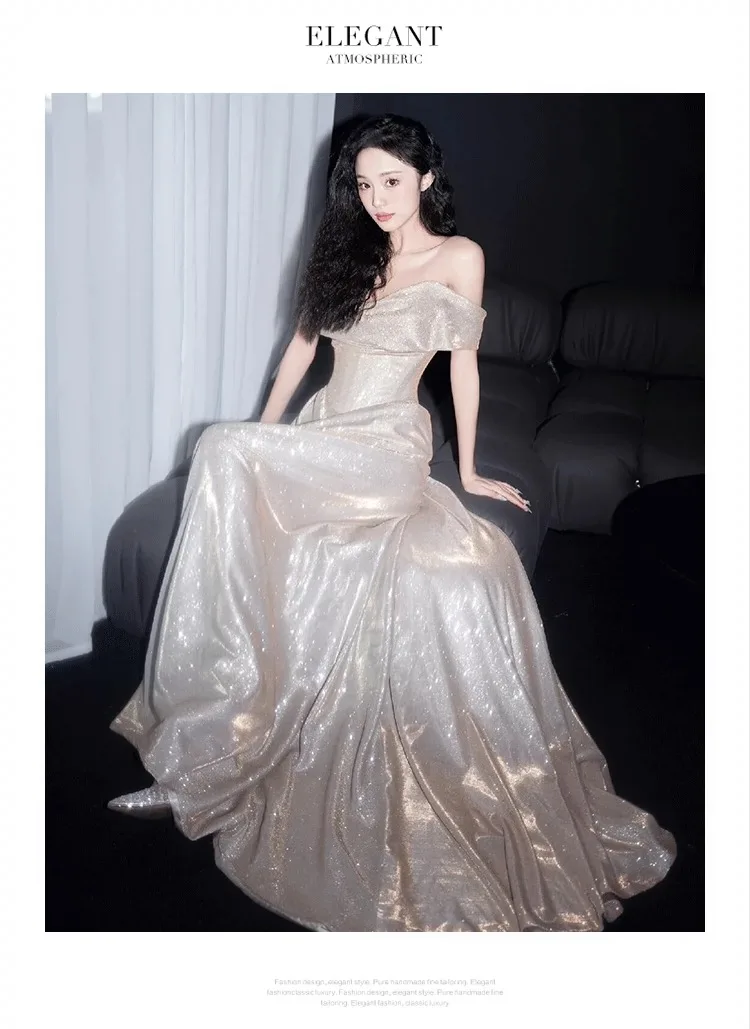 DERMEARNE Ivory White Sequin Evening Dress A Line Floor Length Strapless Off The Shoulder Special Occasion Celebrity Gowns 2025 Backless