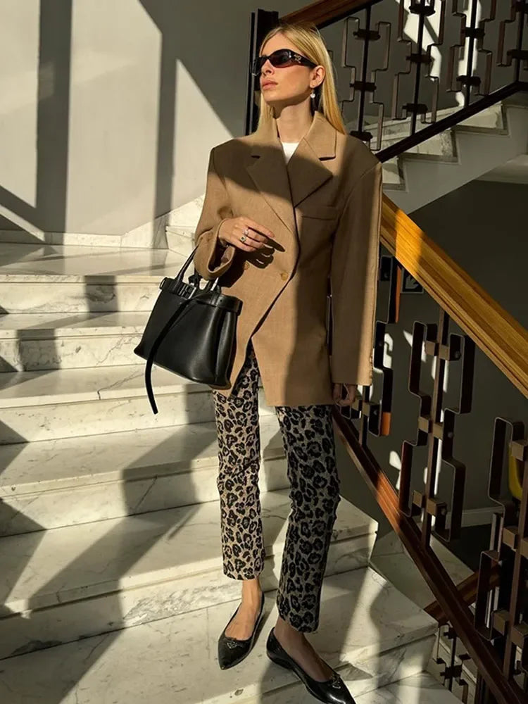 2024 New Women's Brown Lapel Solid Blazer Coat Female Commute Long Sleeves Pocket Loose Jacket Casual Lady Irregular Outerwear