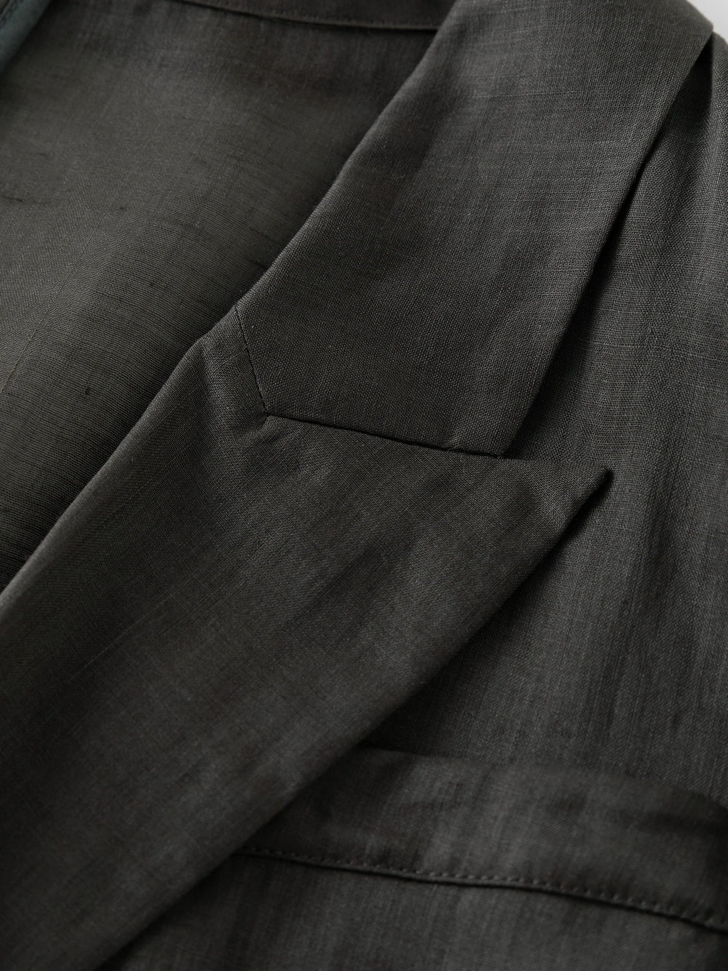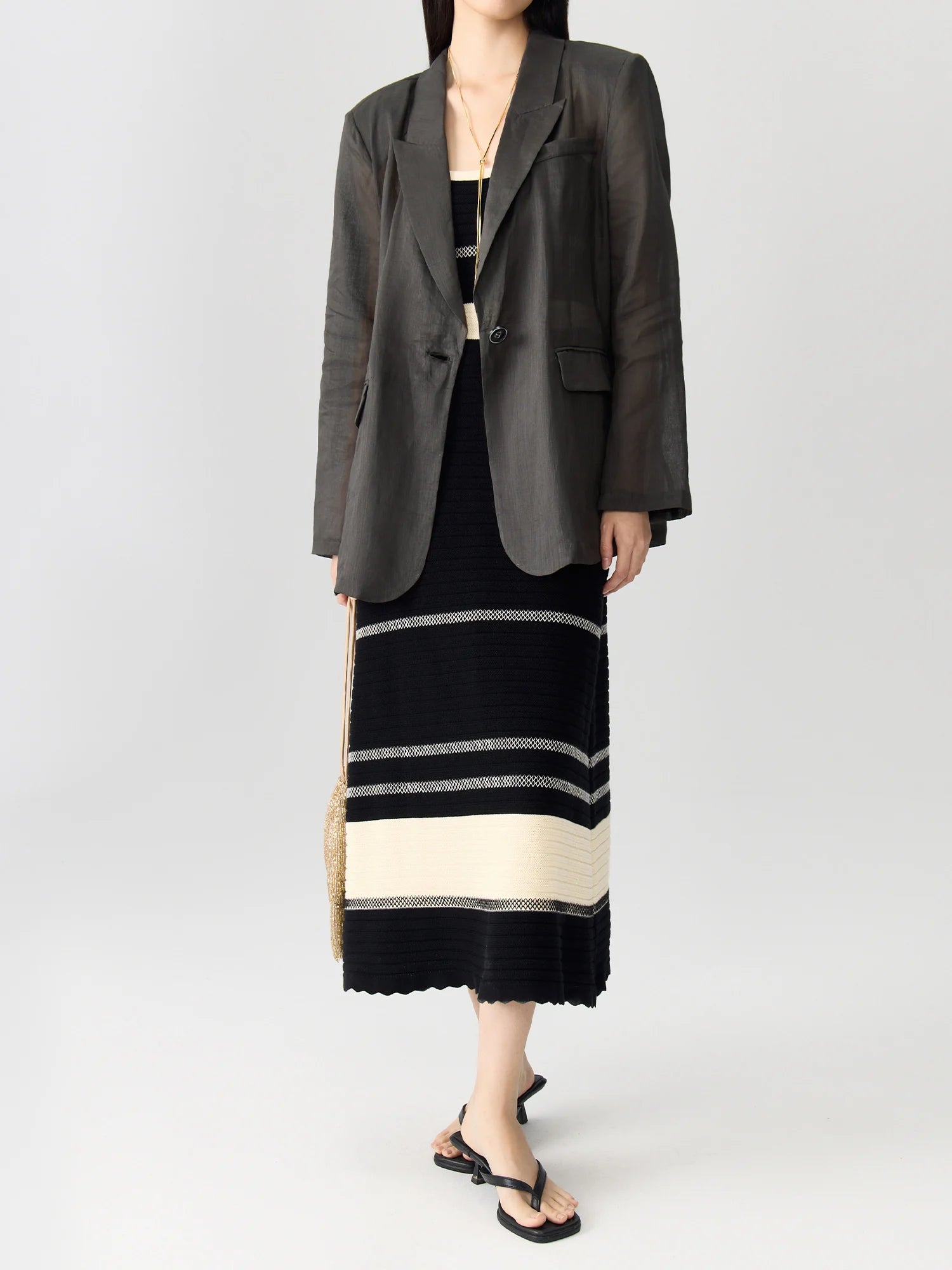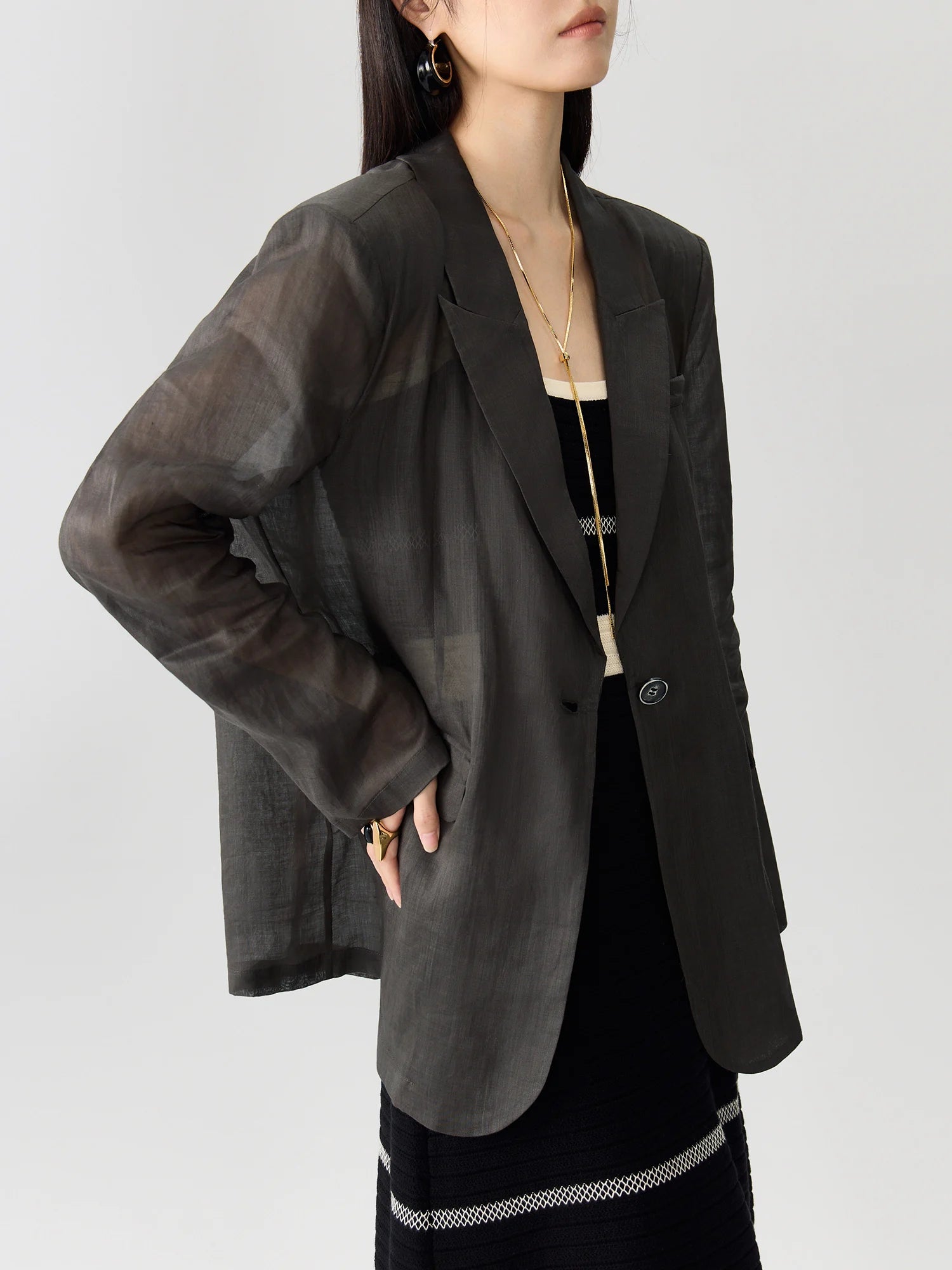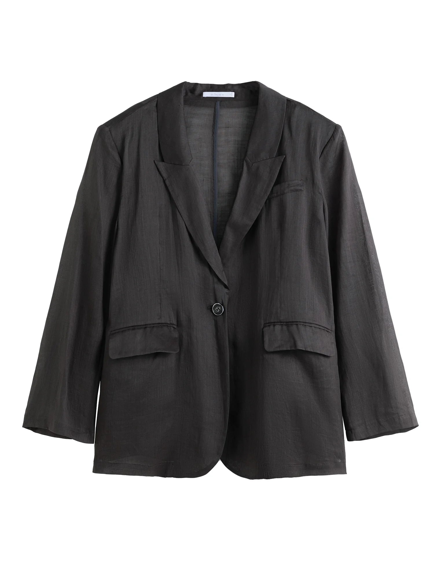 DERMEARNE DUSHU Women Thin Blazer Coats Autumn New Dark Grey Simple Elagant Notched Collar Office Lady Blazers Jacket 24DS83130