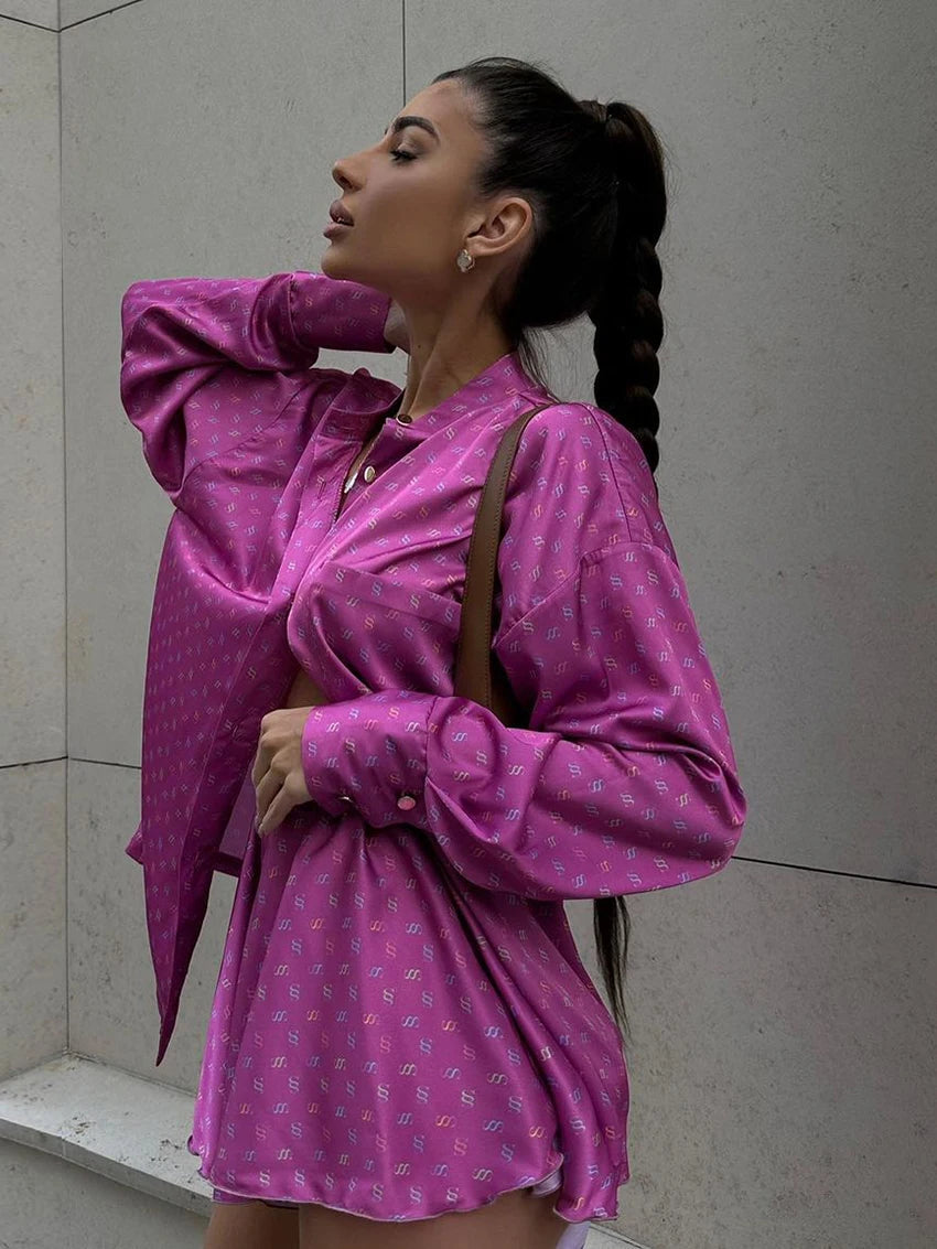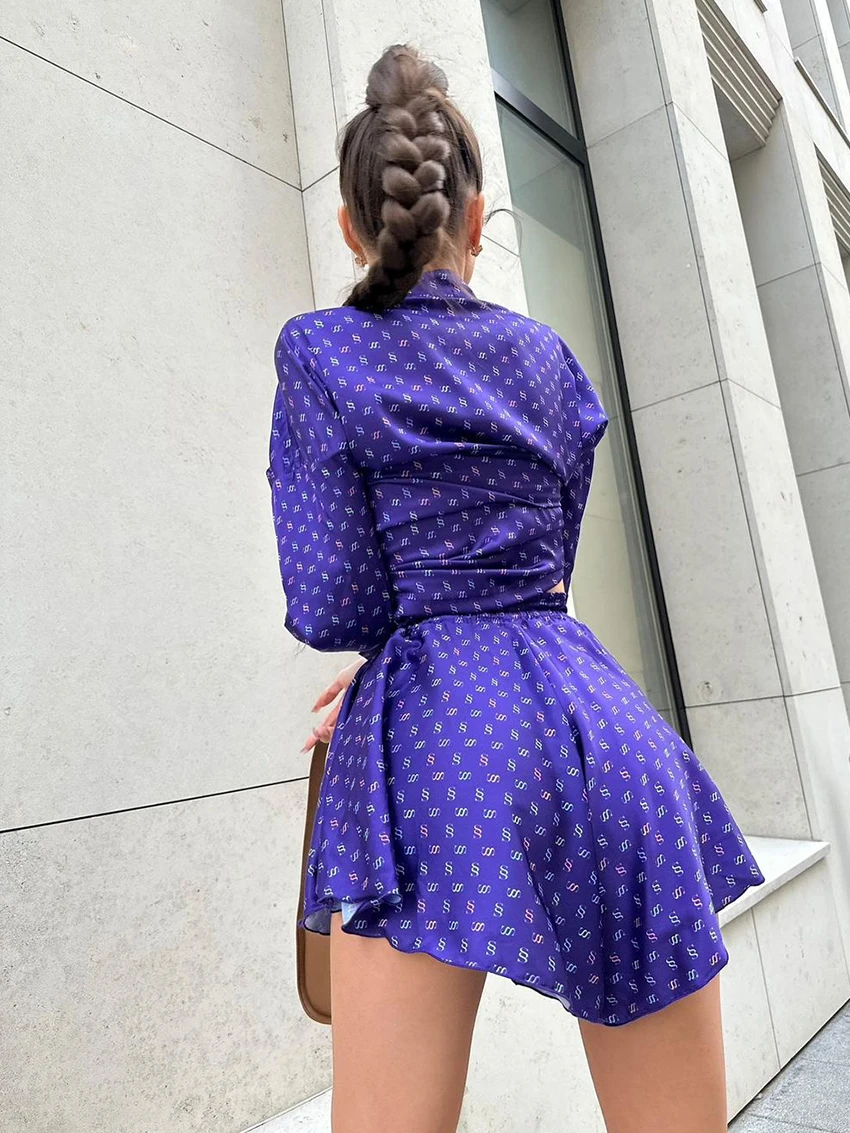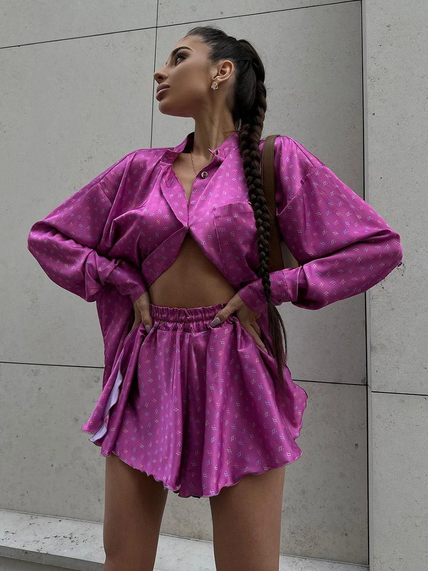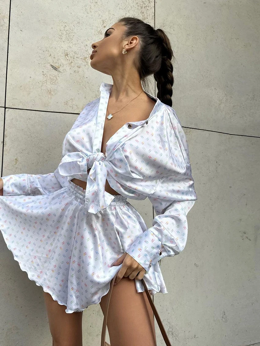 DERMEARNE Marthaqiqi Fashion Women Pajamas 2 Piece Suits Long Sleeve Nightgowns Long Sleeve Nightwear Shorts Casual Printing Sleepwear Set