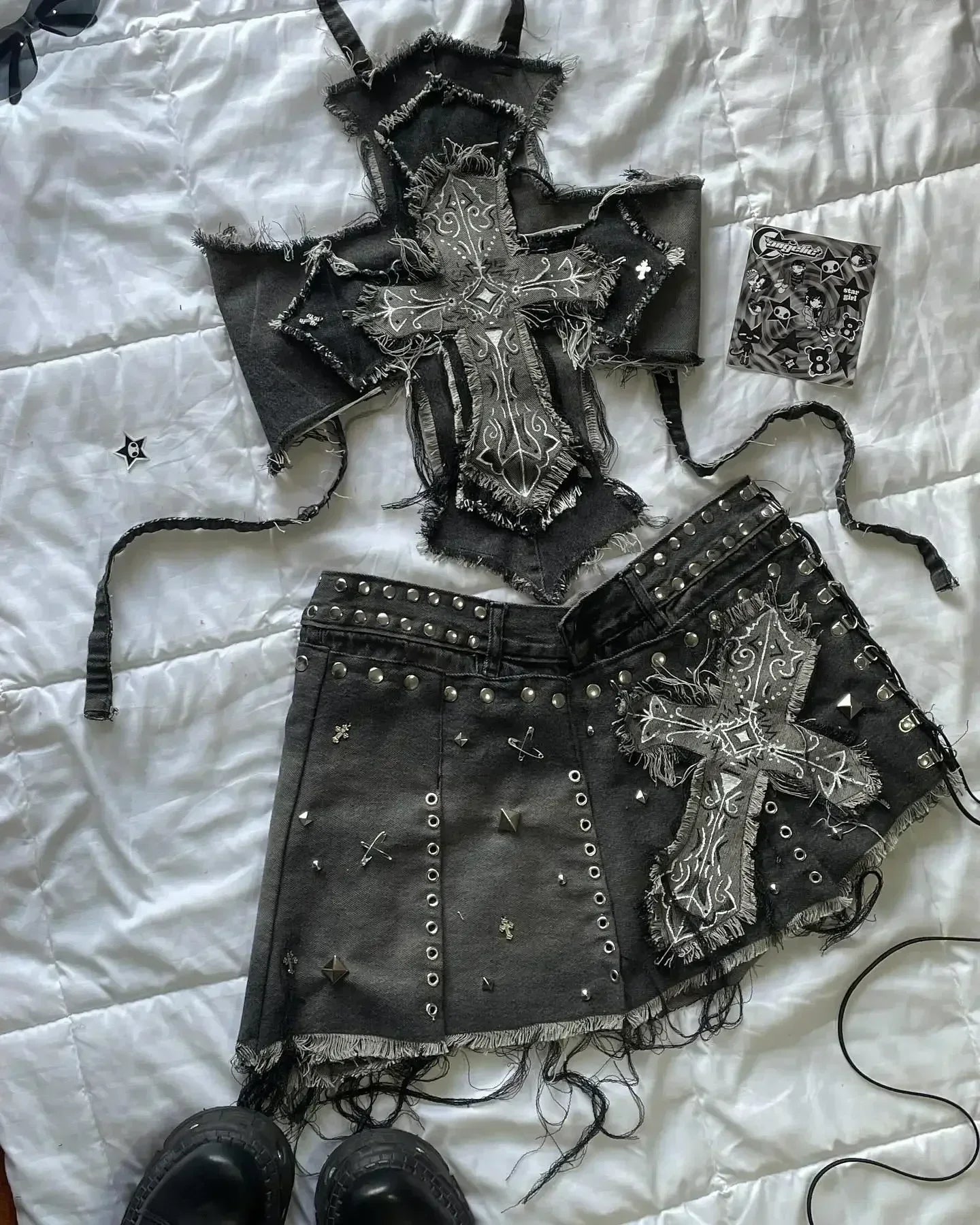 Dermearne Y2K Light Gray Pants Suit Womens Harajuku Sexy Slim Tube Tops Goth High Waisted Sweatpants Hot Girl Autumn Winter Two Piece Sets