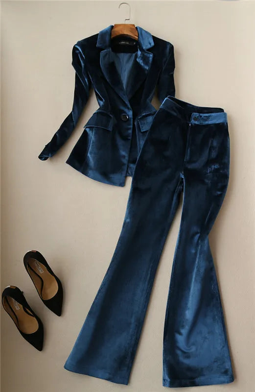 Tesco Women's Burgundy Velvet Pantsuit Jacket Women Fashion Long Sleeve Suit Women Tailored Collar Jacket Suits Female Ladies