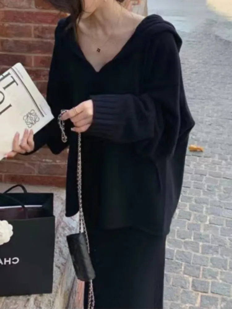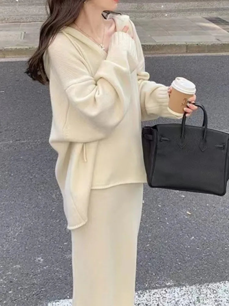 Women 2 Piece Knitted Sweater Suits Winter Fashion Korean Blouses Tops and Skirt Set Casual Elegant Female Hoodies Outfits 2024