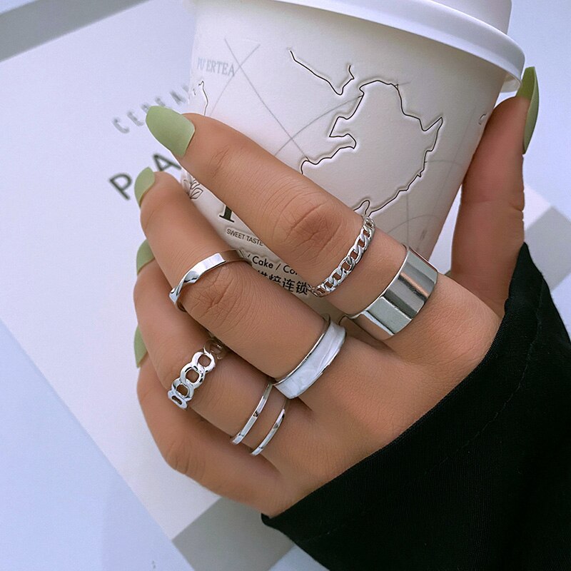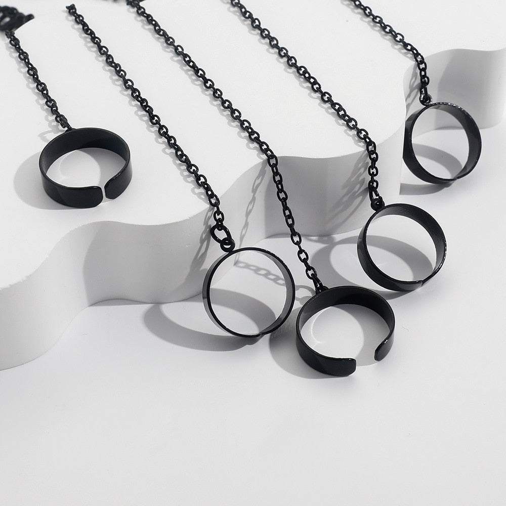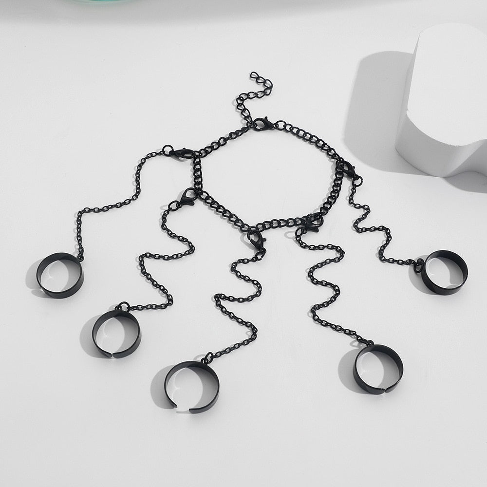 Dermearne Punk Style Black Color Chain Wrist Rings for Women Men Charm Hip Hop Geometric Chain Open Rings Set Couple Trend Jewelry