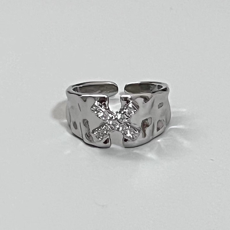 Dermearne Stainless Steel Harajuku Y2K Shiny Star Cross Crystal Rings for Women Unisex Couple Engagement Ring Party Creative Jewelry