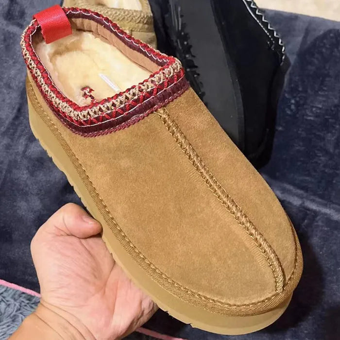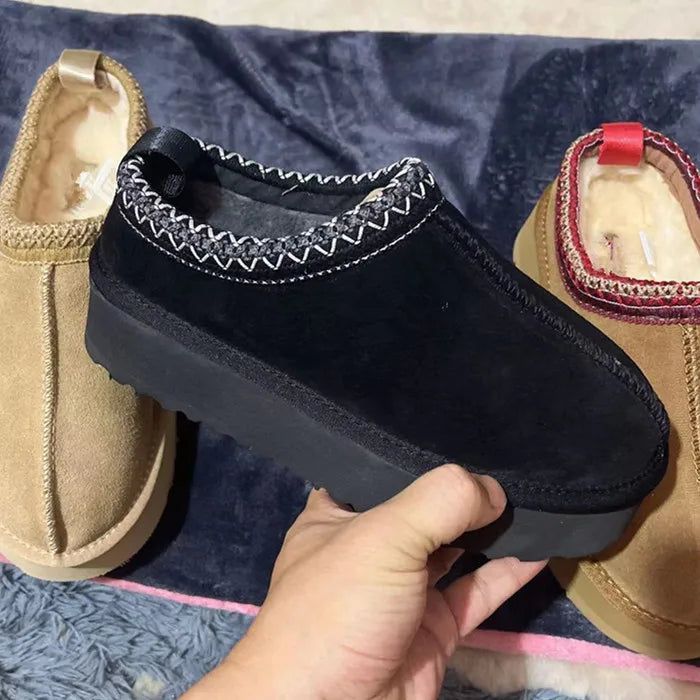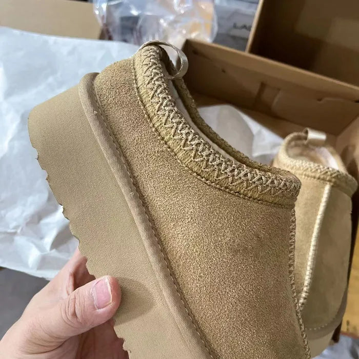 2024 HOT Real Suede Leather Women Snow Boots Waterproof Wool Fur Lined Slip-on Warm 4CM Platfrom Slippers Plus Size 45